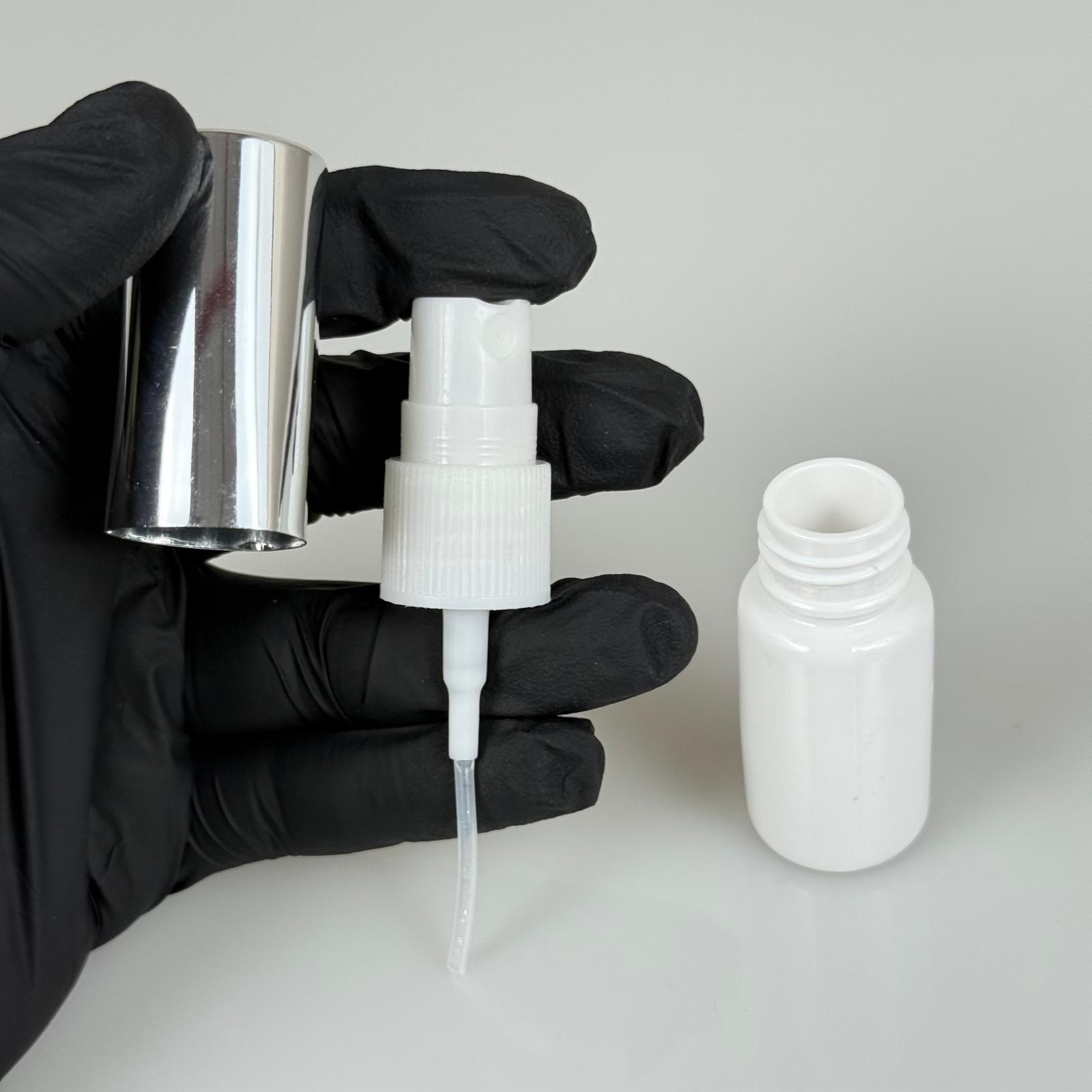 10 ML PET KOLONYA, PARFÜM VB ŞİŞELERİ - METAL ALÜMİNYUM GÜMÜŞ KAPAK + VİDALI SPREY + 10 CC BEYAZ SHOT ŞİŞE SET TAKIM