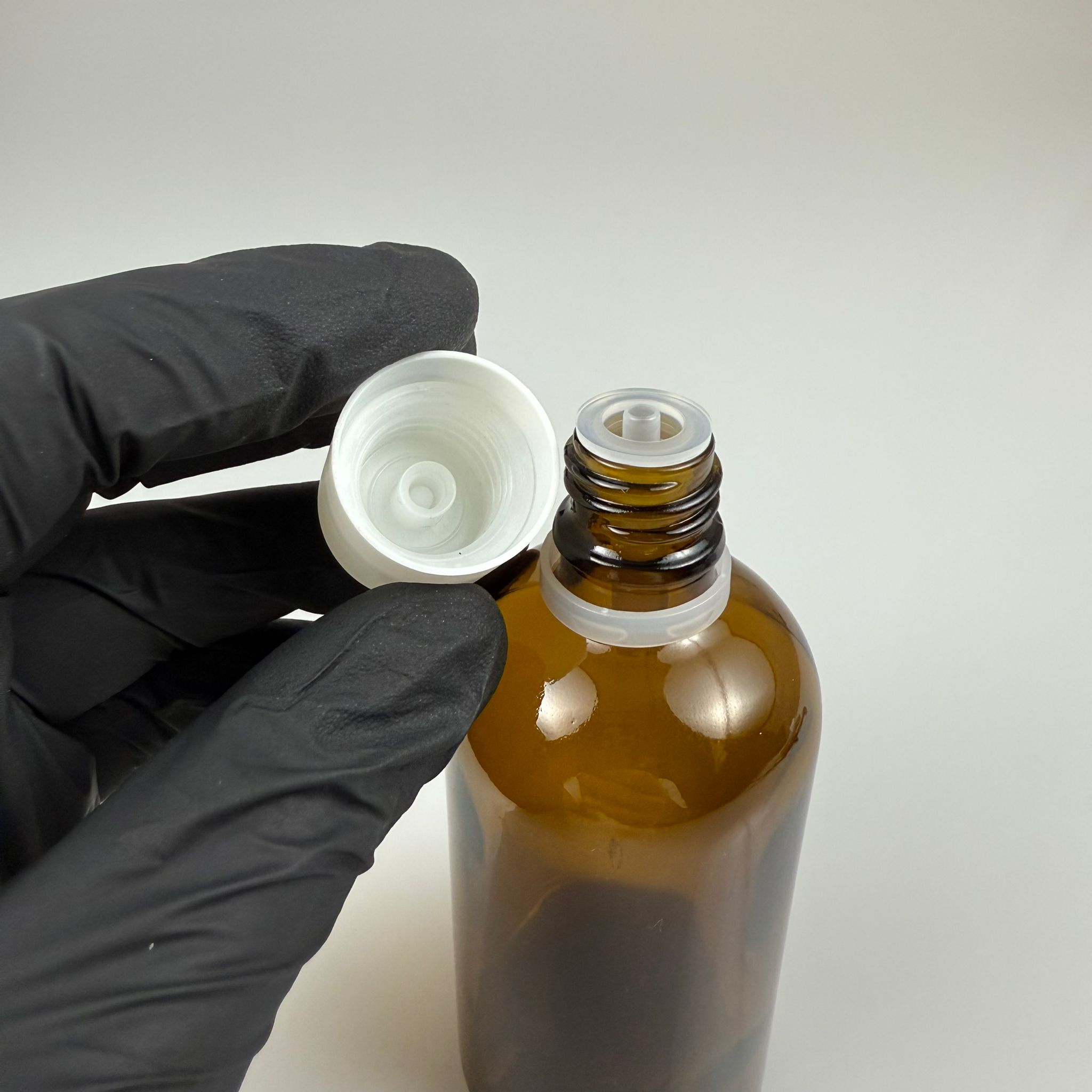 100 CC AMBER CAM ŞİŞE + İÇTEN DAMLALIKLI ÇOCUK KİLİTLİ BEYAZ KAPAK - KAHVERENGİ 100 ML KİLİT KAPAKLI DAMLATMALI ŞİŞE