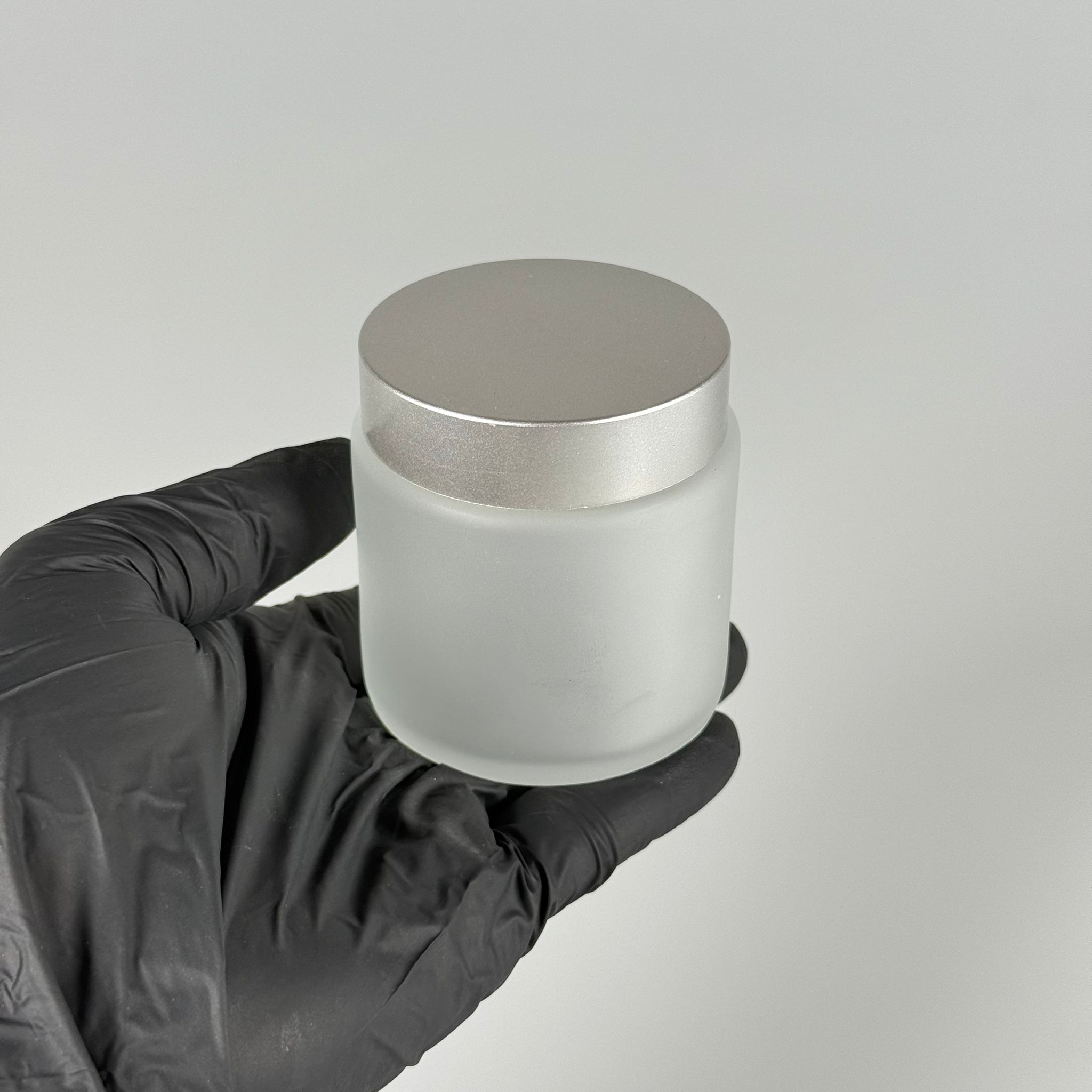100 CC CAM BUZLU KREM KAVANOZU - GÜMÜŞ KAPAKLI İÇ CONTALI - 100 ML BUZLU CAM KREM KAVANOZU - BUZLU MUM KAVANOZU