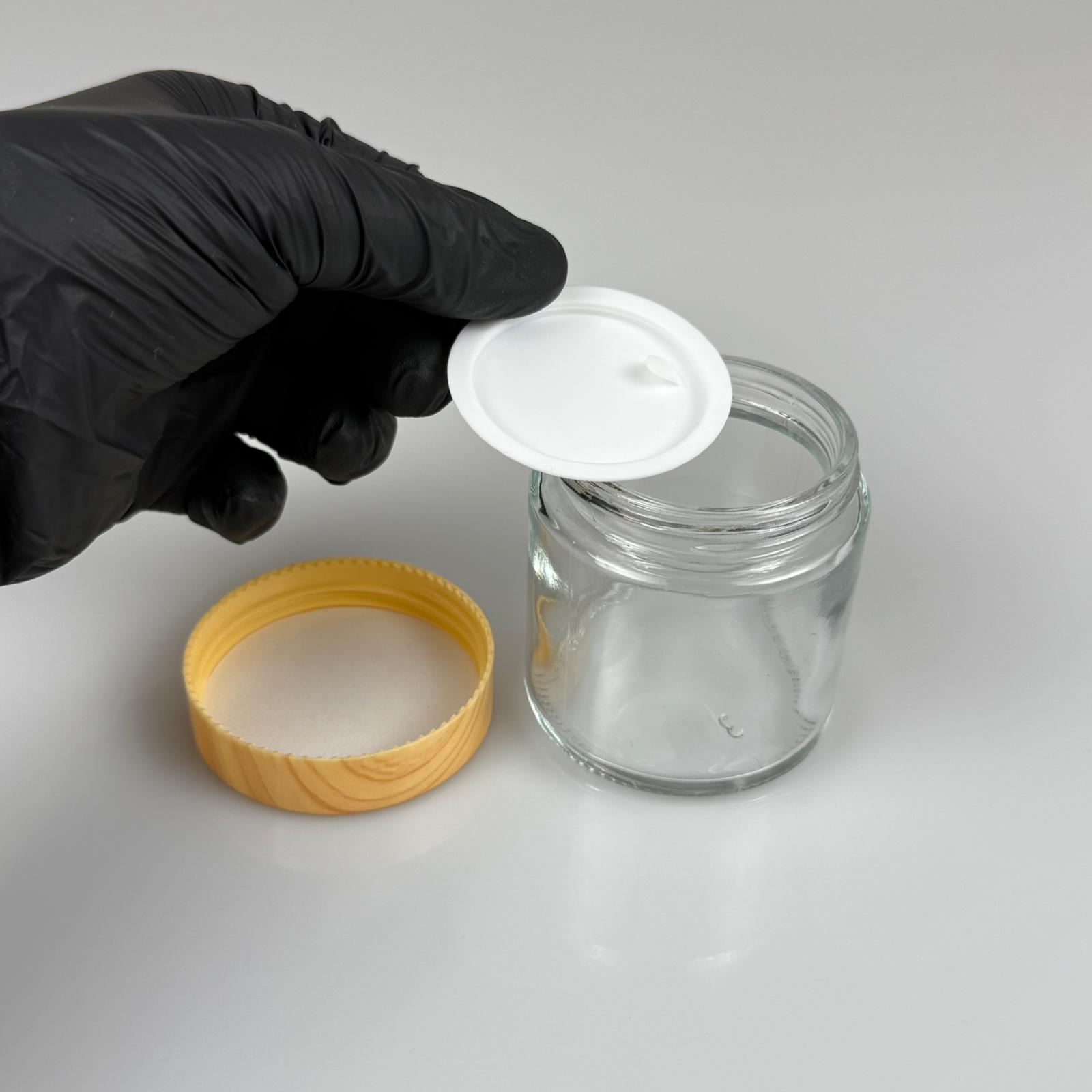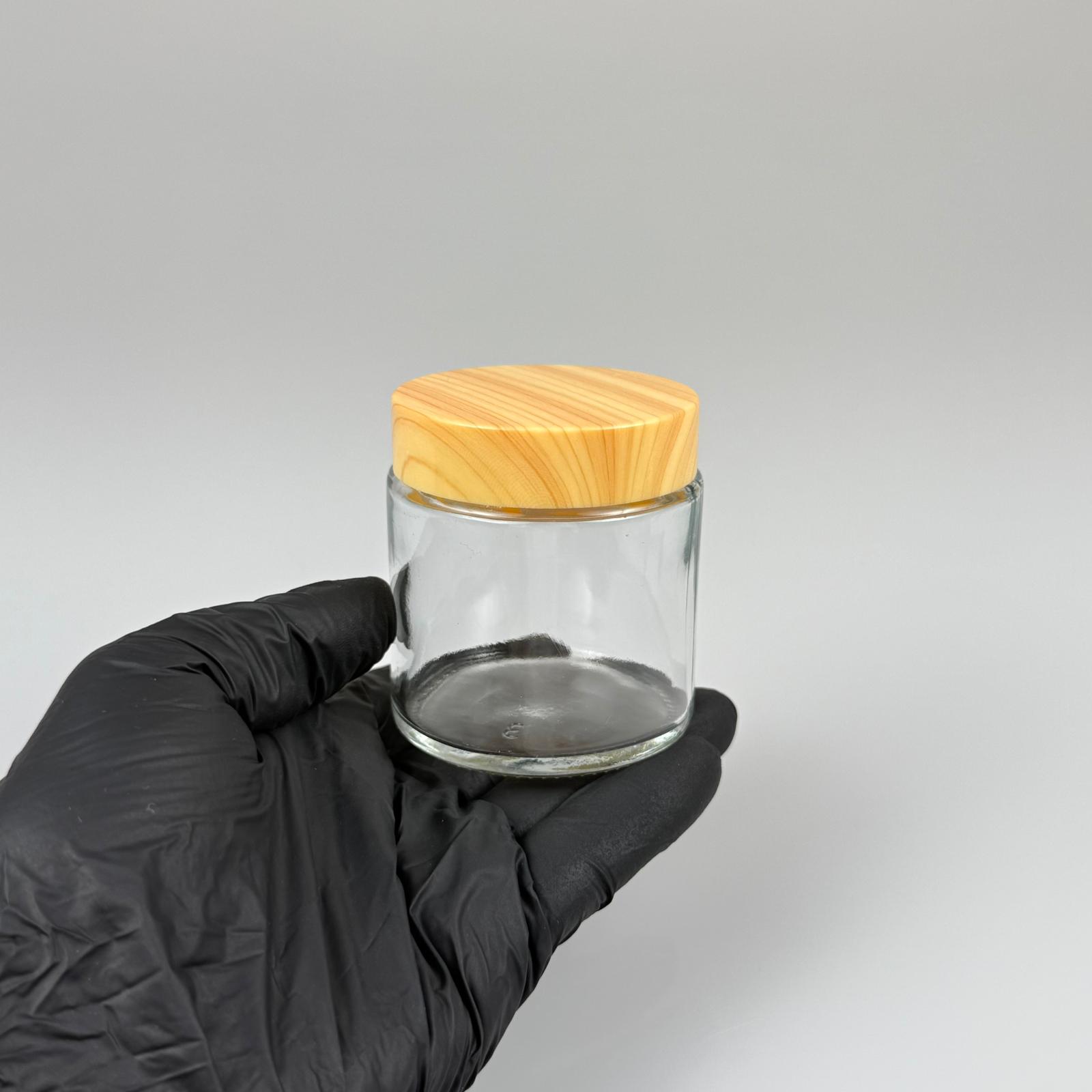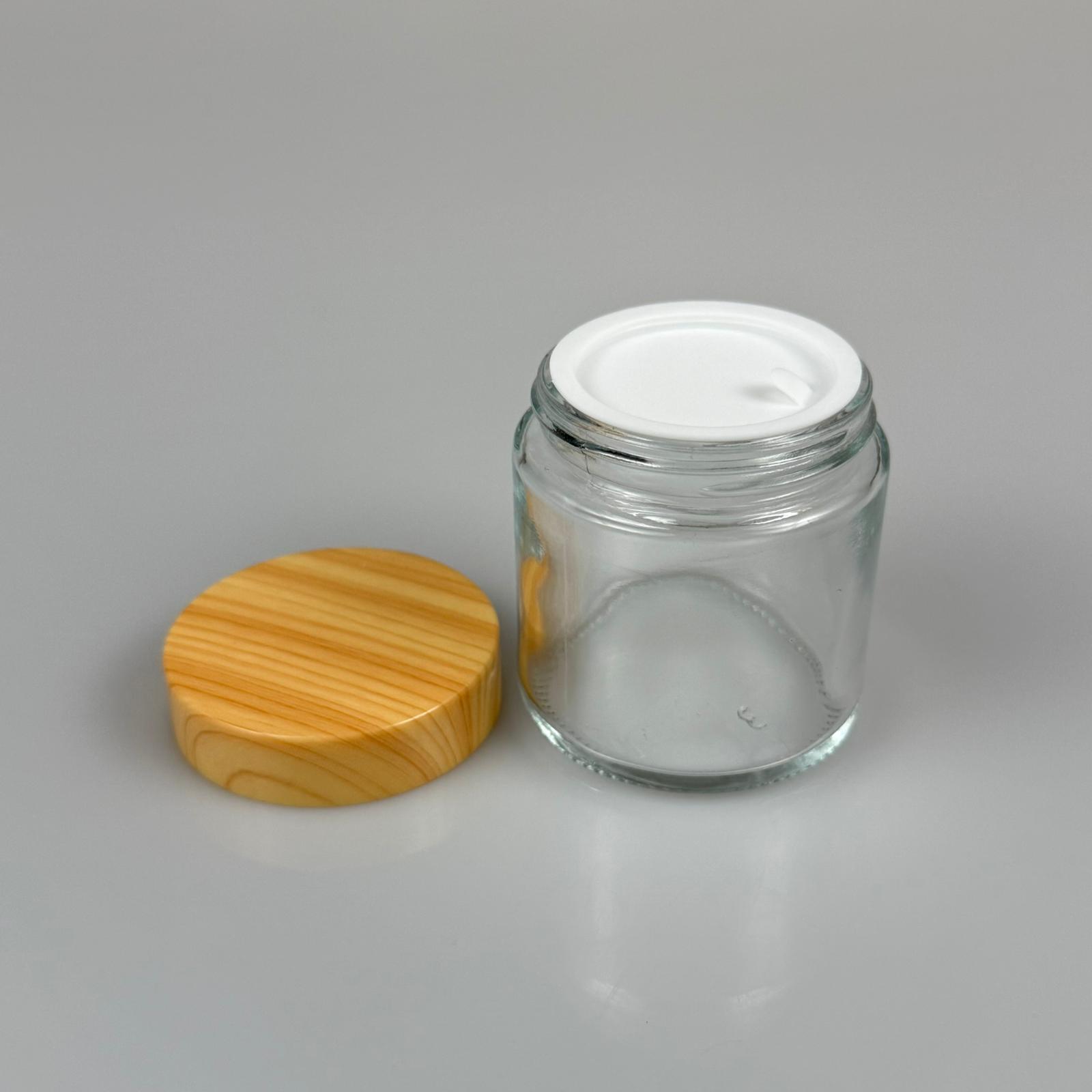 100 CC CAM ŞEFFAF KREM KAVANOZU - AHŞAP DESENLİ PLASTİK KAPAKLI İÇ CONTALI - 100 ML CAM KAVANOZ - KOZMETİK KAVANOZ