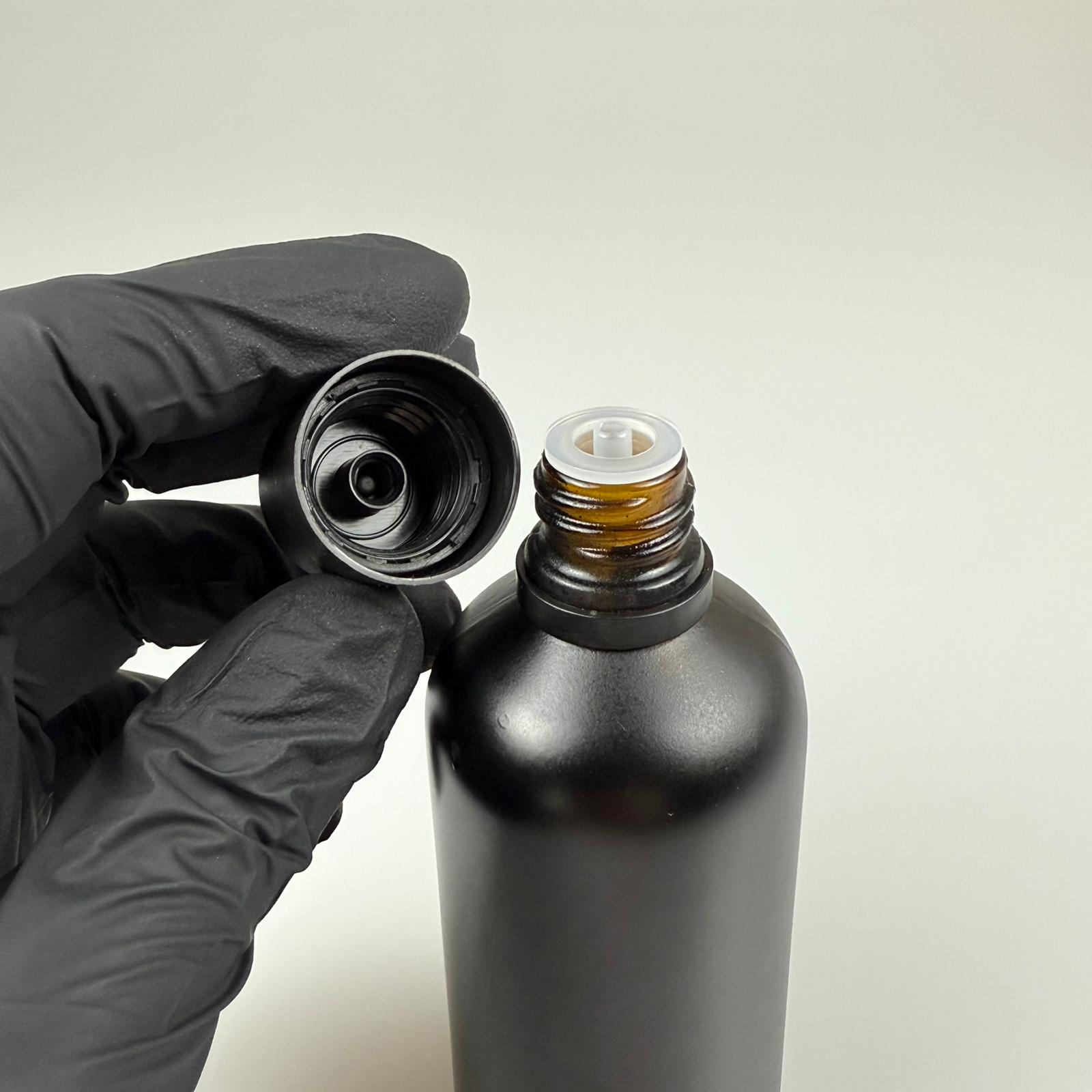 100 CC MAT SİYAH CAM ŞİŞE + İÇTEN DAMLALIKLI ÇOCUK KİLİTLİ SİYAH KAPAK - MAT SİYAH 100 ML KİLİT KAPAKLI DAMLATMALI ŞİŞE