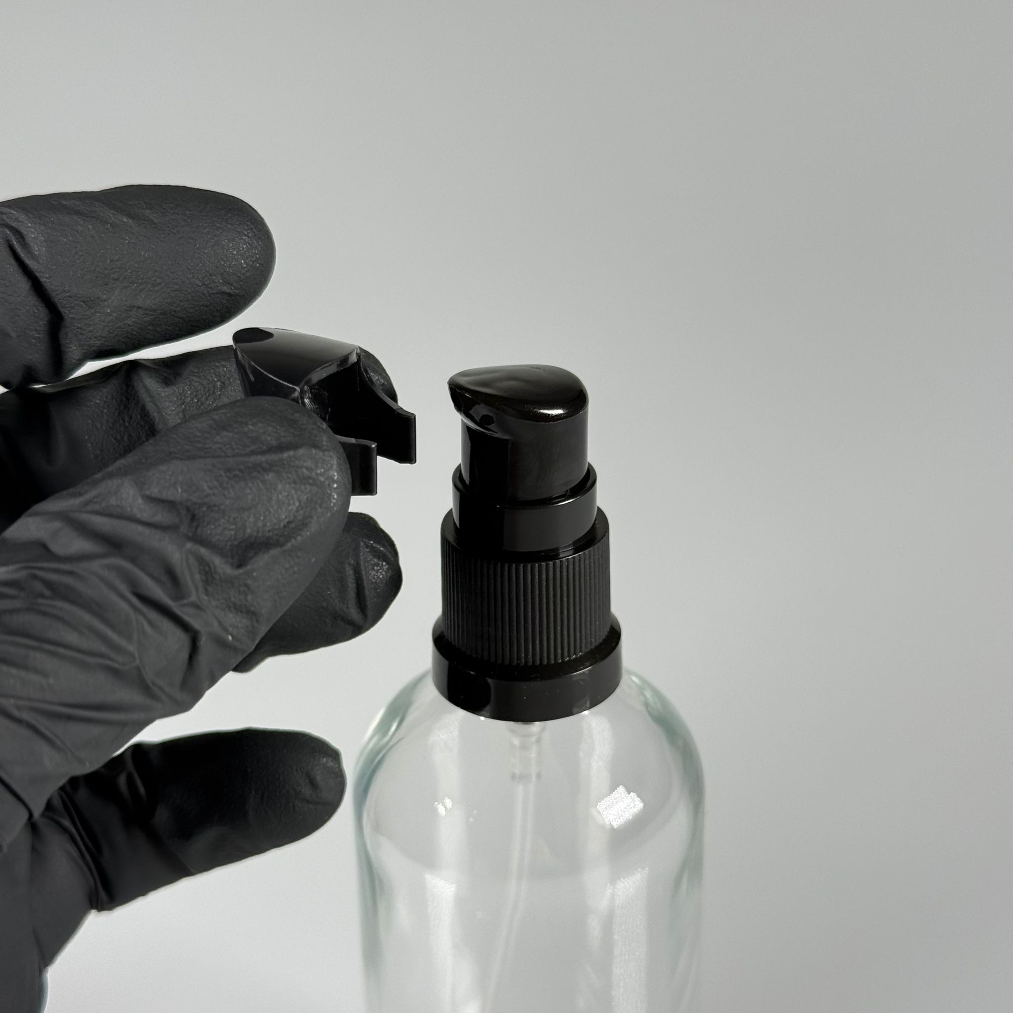 100 CC ŞEFFAF CAM ŞİŞE - SIZDIRMAZ ETEKLİ SİYAH LOSYON POMPALI TAKIM - 100 ML LOSYON ŞİŞESİ - YAĞ, KREM GİBİ YOĞUN KIVAMLI SIVILAR İÇİN CAM AMBALAJ