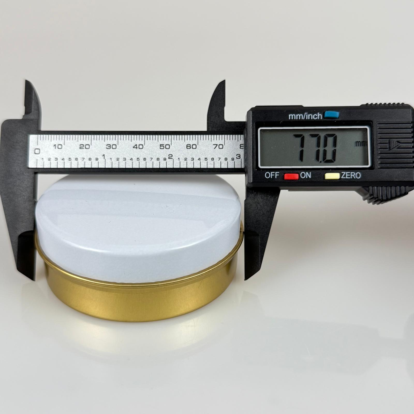 100 CC TENEKE KUTU - GOLD - BEYAZ KAPAKLI - METAL AMBALAJ - MUM TENEKESİ 77 X 28 MM