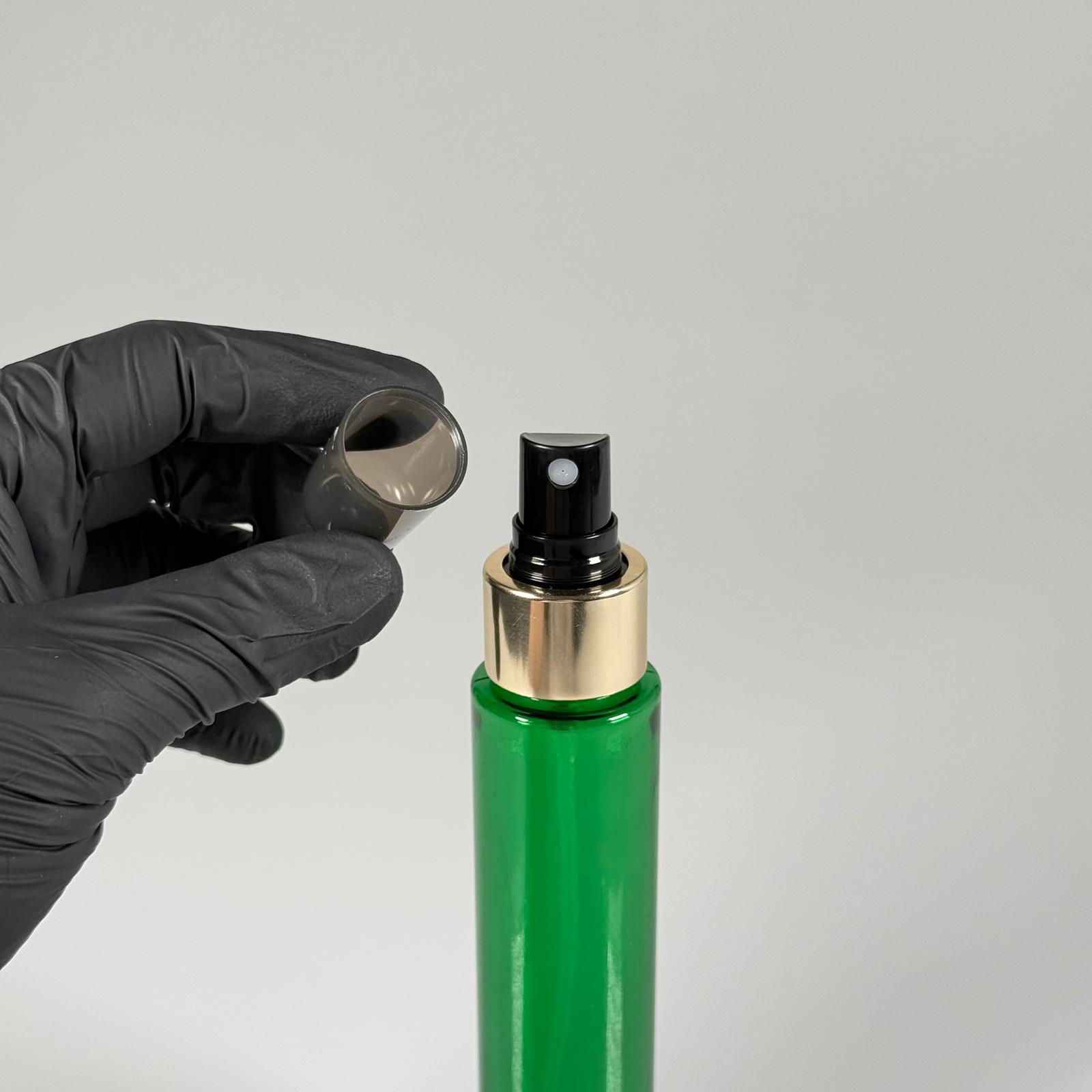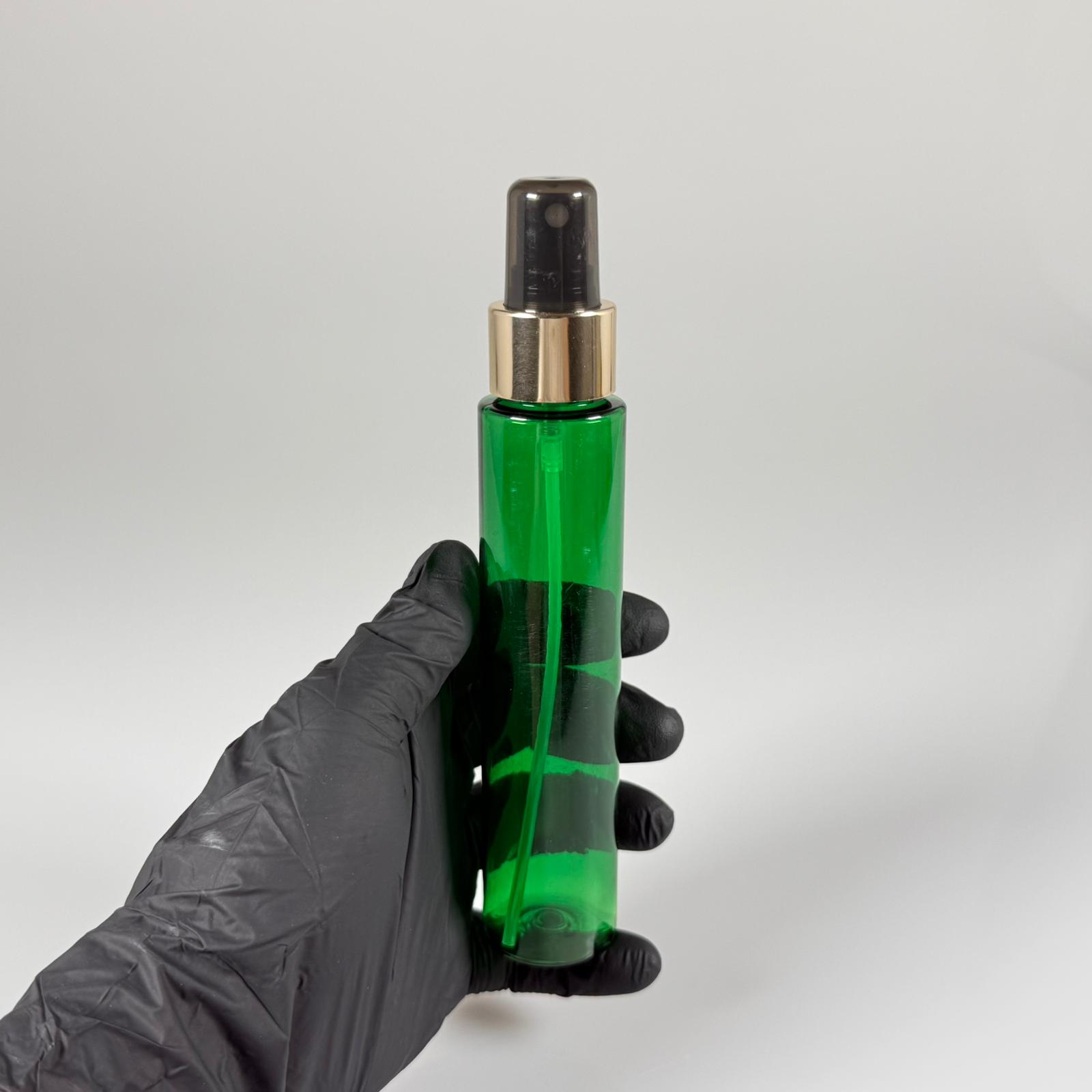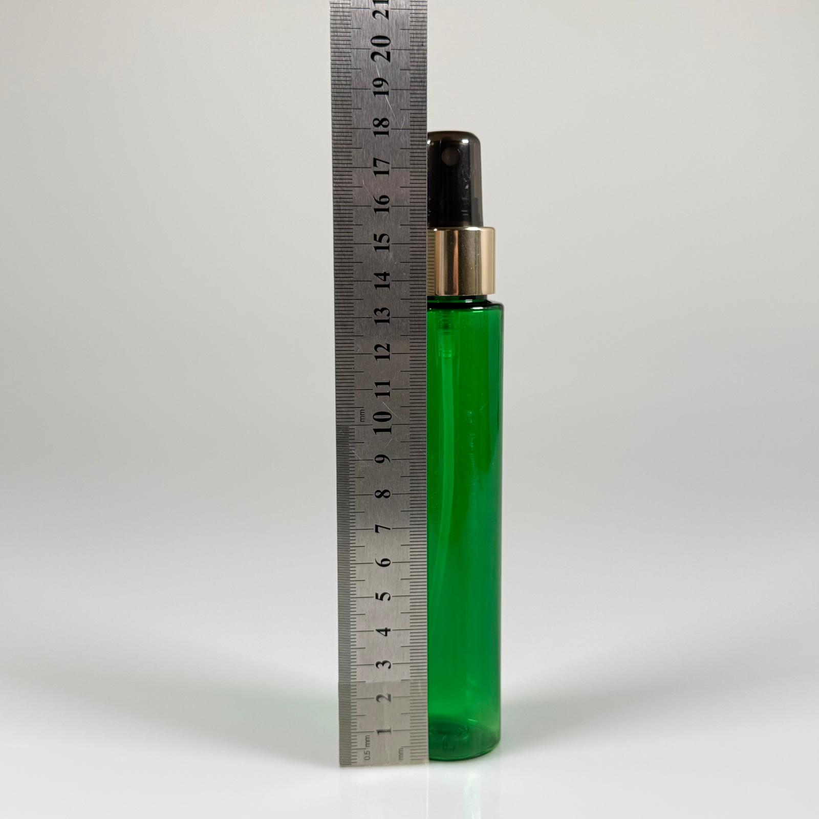 100 CC UZUN SİLİNDİR YEŞİL PET ŞİŞE (24 GR) - GOLD SPREYLİ - 100 ML BİBERİYE SUYU, LAVANTA YAĞI, SAÇ SERUM, TONİK VB İÇİN PLASTİK KOZMETİK AMBALAJLARI