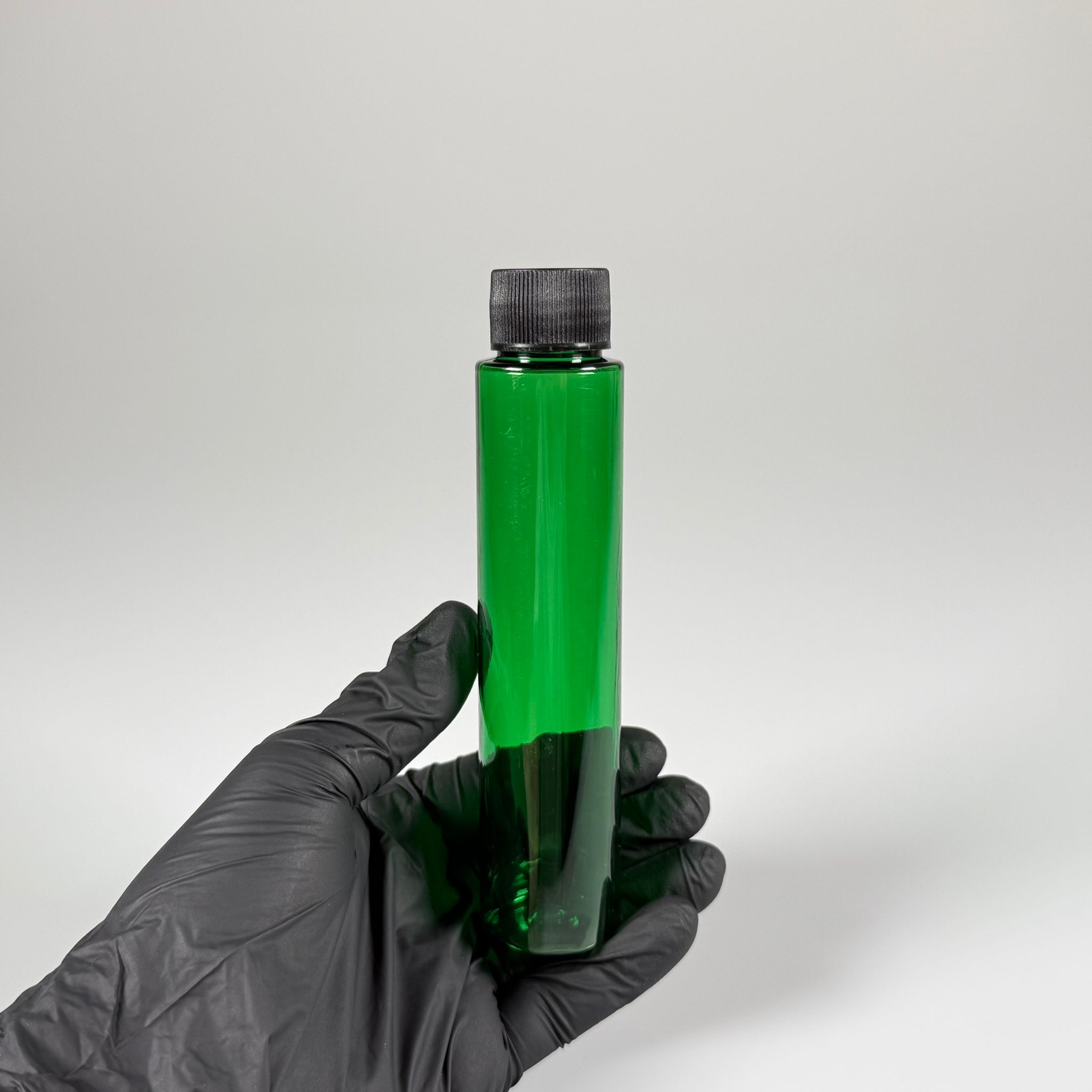 100 CC UZUN SİLİNDİR YEŞİL PET ŞİŞE (24 GR) - SİYAH KAPAKLI KOLONYA TIPALI - 100 ML BİBERİYE SUYU, LAVANTA YAĞI, SAÇ SERUM, TONİK VB İÇİN PLASTİK KOZMETİK AMBALAJLARI