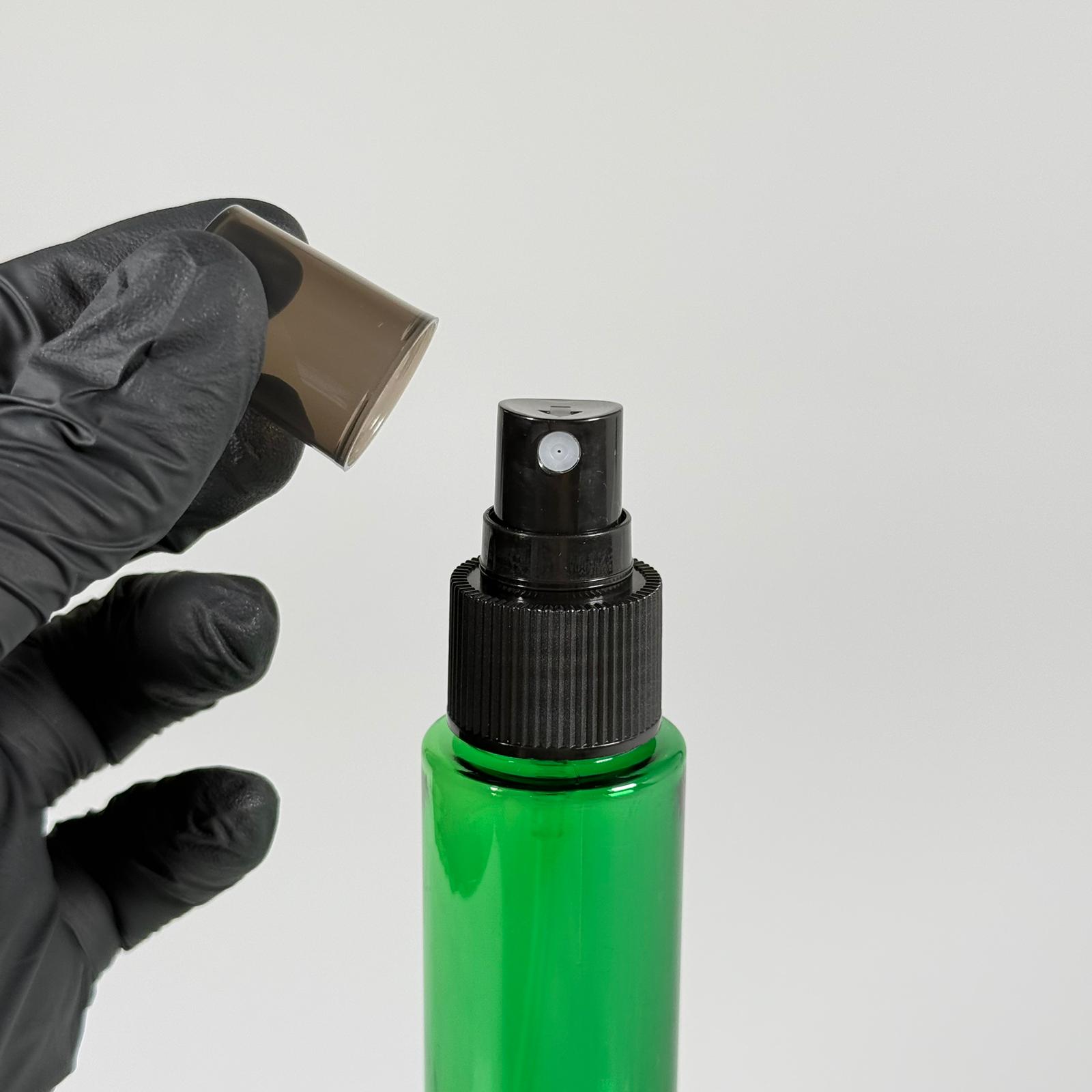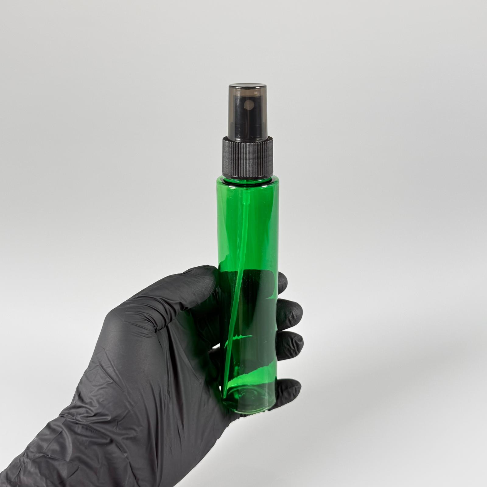 100 CC UZUN SİLİNDİR YEŞİL PET ŞİŞE (24 GR) - SİYAH SPREYLİ - 100 ML BİBERİYE SUYU, LAVANTA YAĞI, SAÇ SERUM, TONİK VB İÇİN PLASTİK KOZMETİK AMBALAJLARI