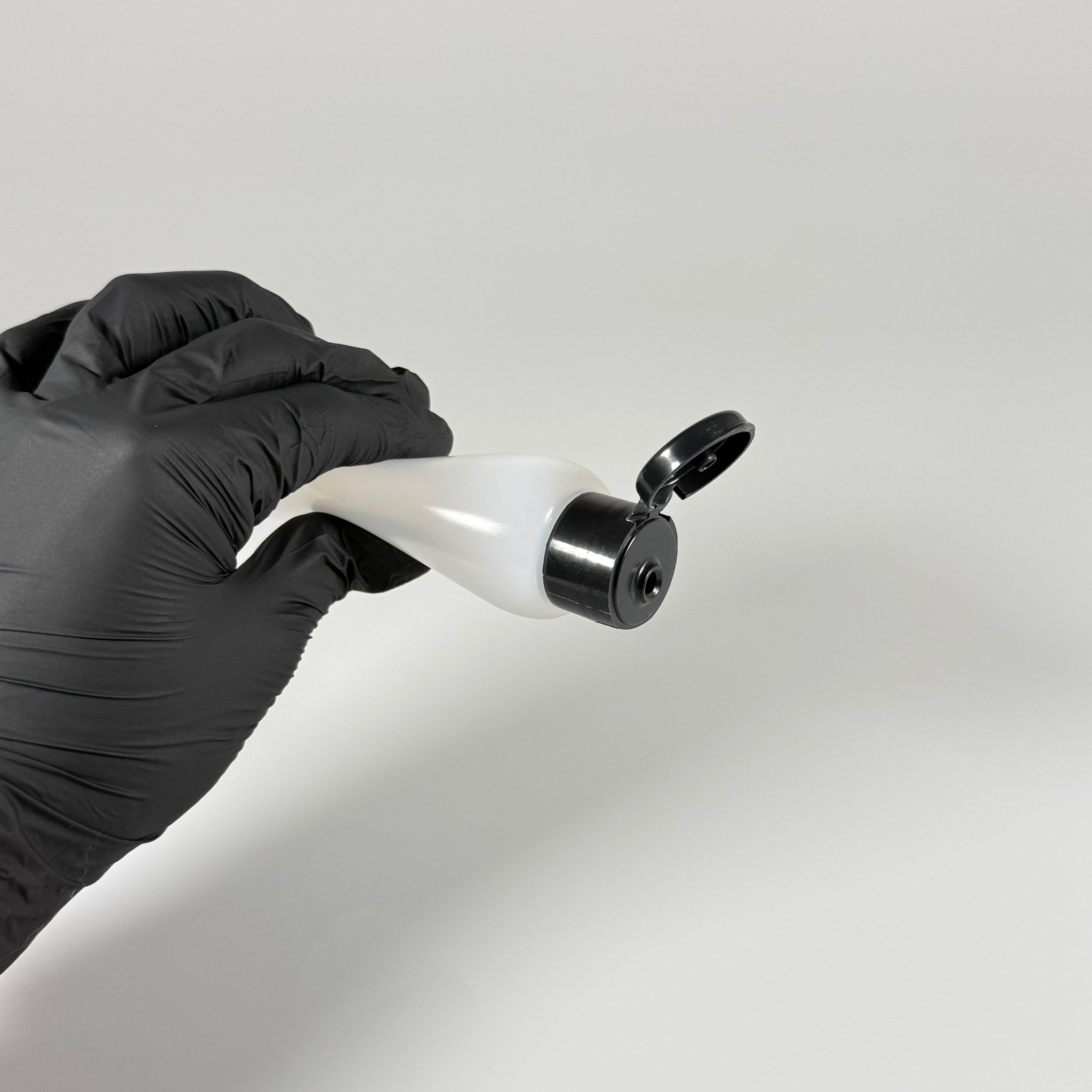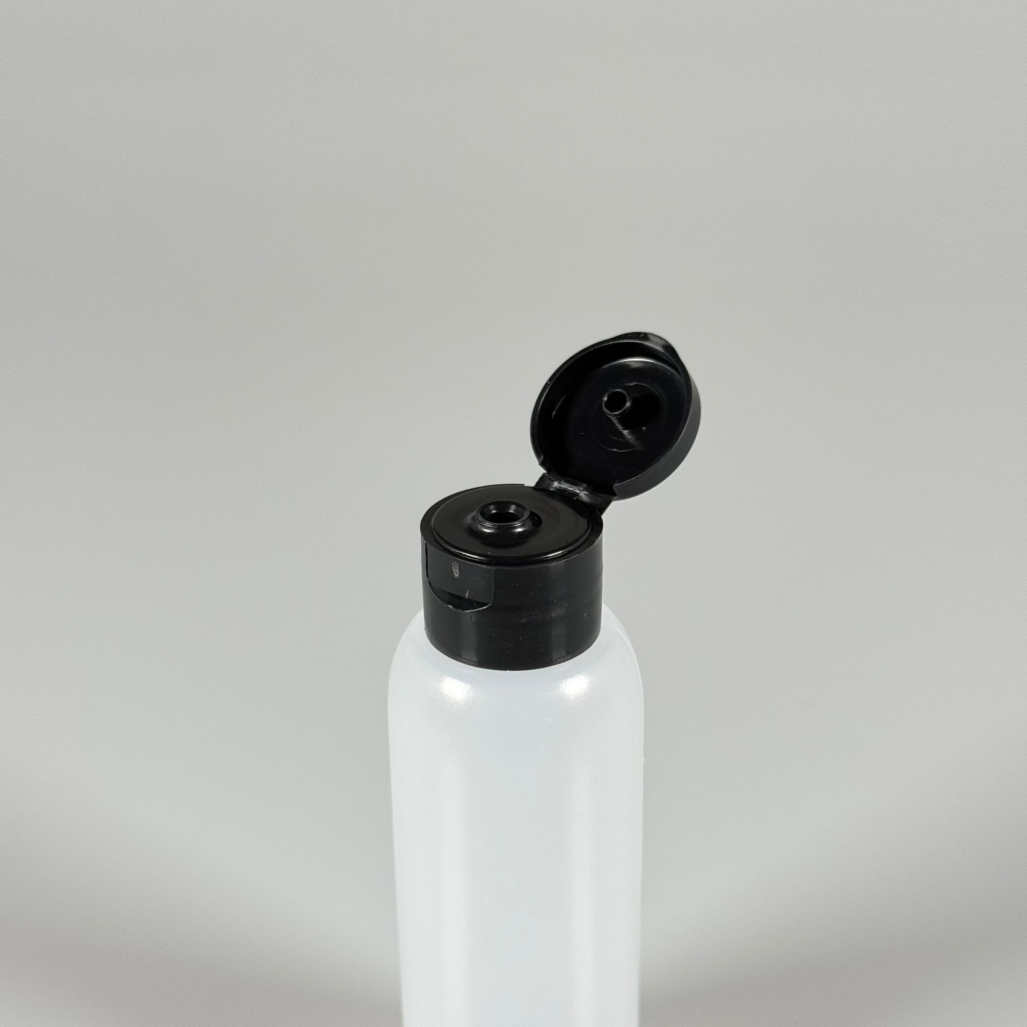 100 ML SIKILABİLİR YUMUŞAK PE PLASTİK ŞİŞE - SİYAH FLİPTOP ŞAMPUAN KAPAKLI - 100 cc sos, yağ, kartuş, mürekkep vb için boş şişeler
