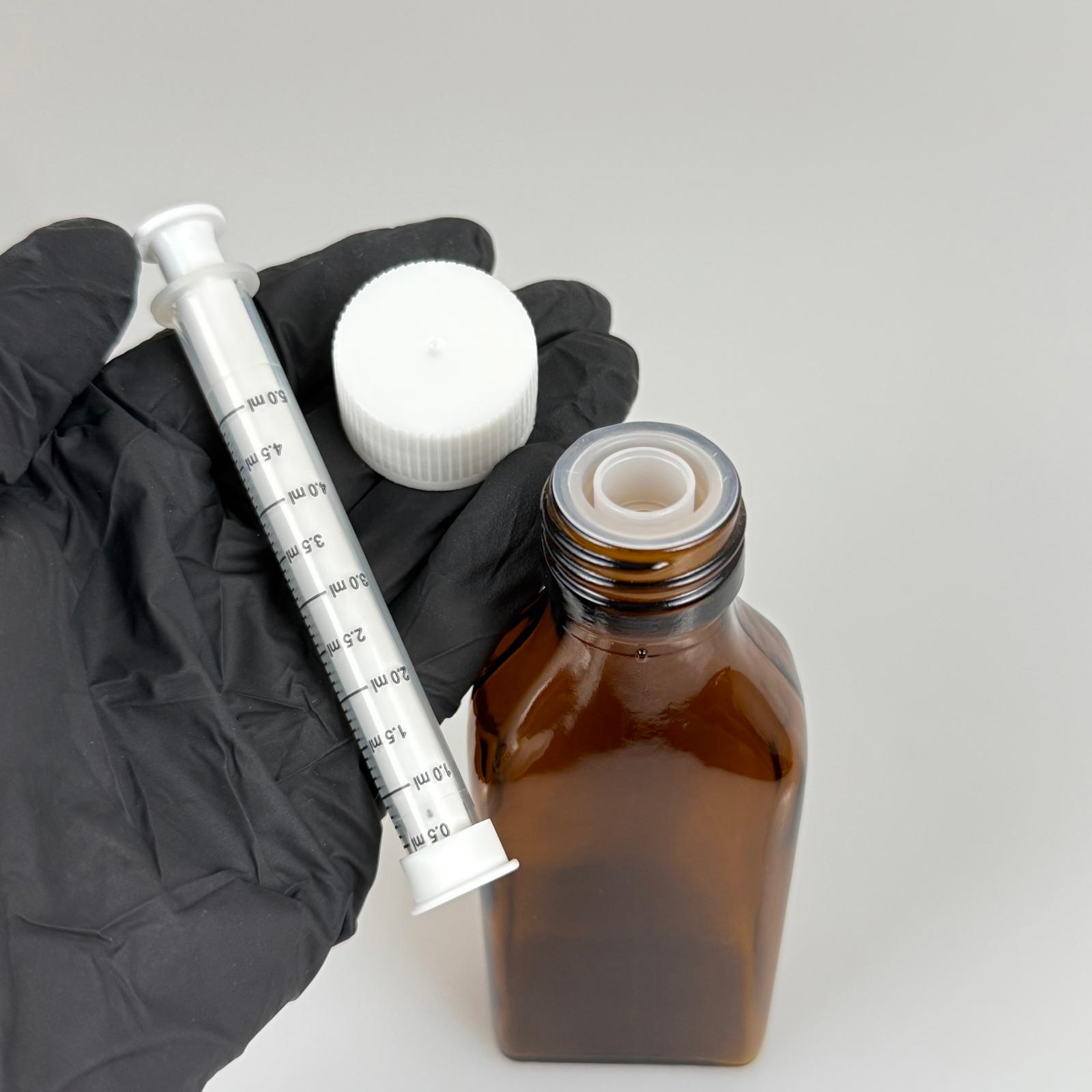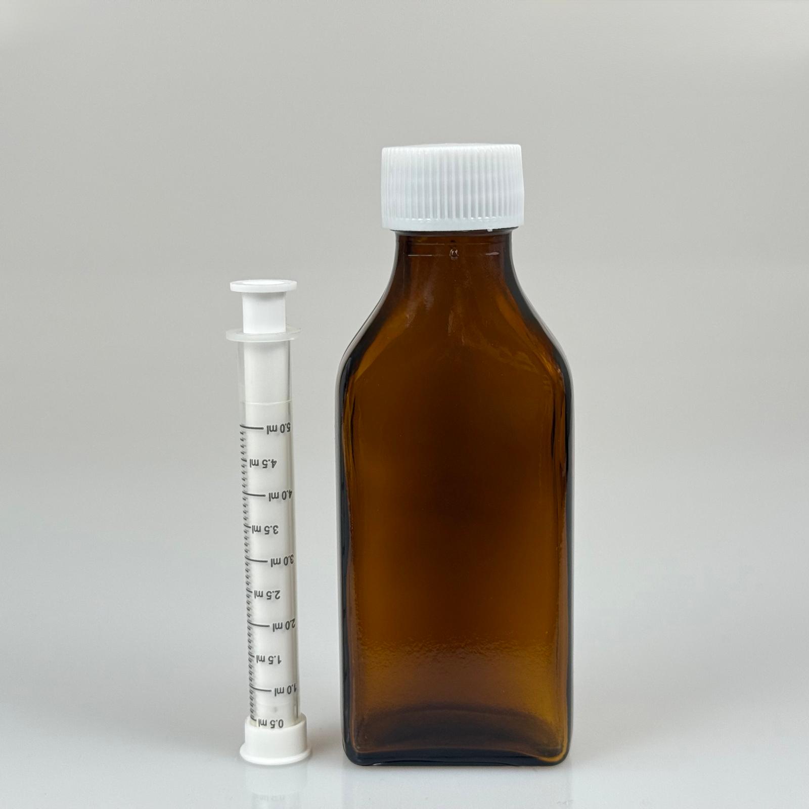 100 ML YASSI CAM ECZA ŞİŞESİ + 5 ML DOZAJ PİPETİ + DOZAJ TIPASI + CONTALI PLASTİK KAPAK TAKIM