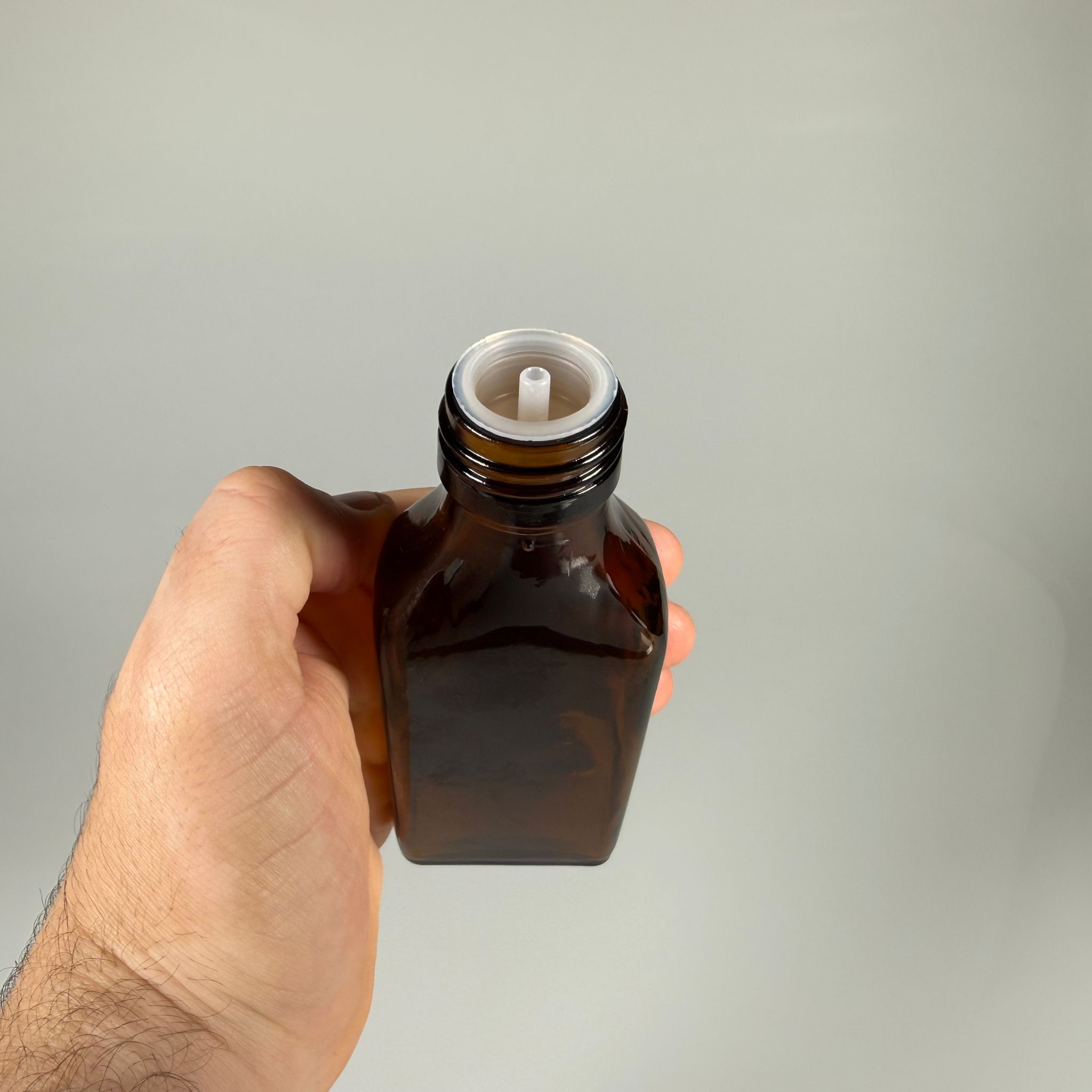 100 ML YASSI DOLUMU KOLAY, GENİŞ AĞIZLI İÇTEN DAMLALIKLI ŞİŞE (28 MM AĞIZ) - 100 CC BEYAZ CONTALI KAPAKLI İÇTEN DAMLALIKLI CAM ECZA ŞİŞESİ - AMBER KAHVERENGİ