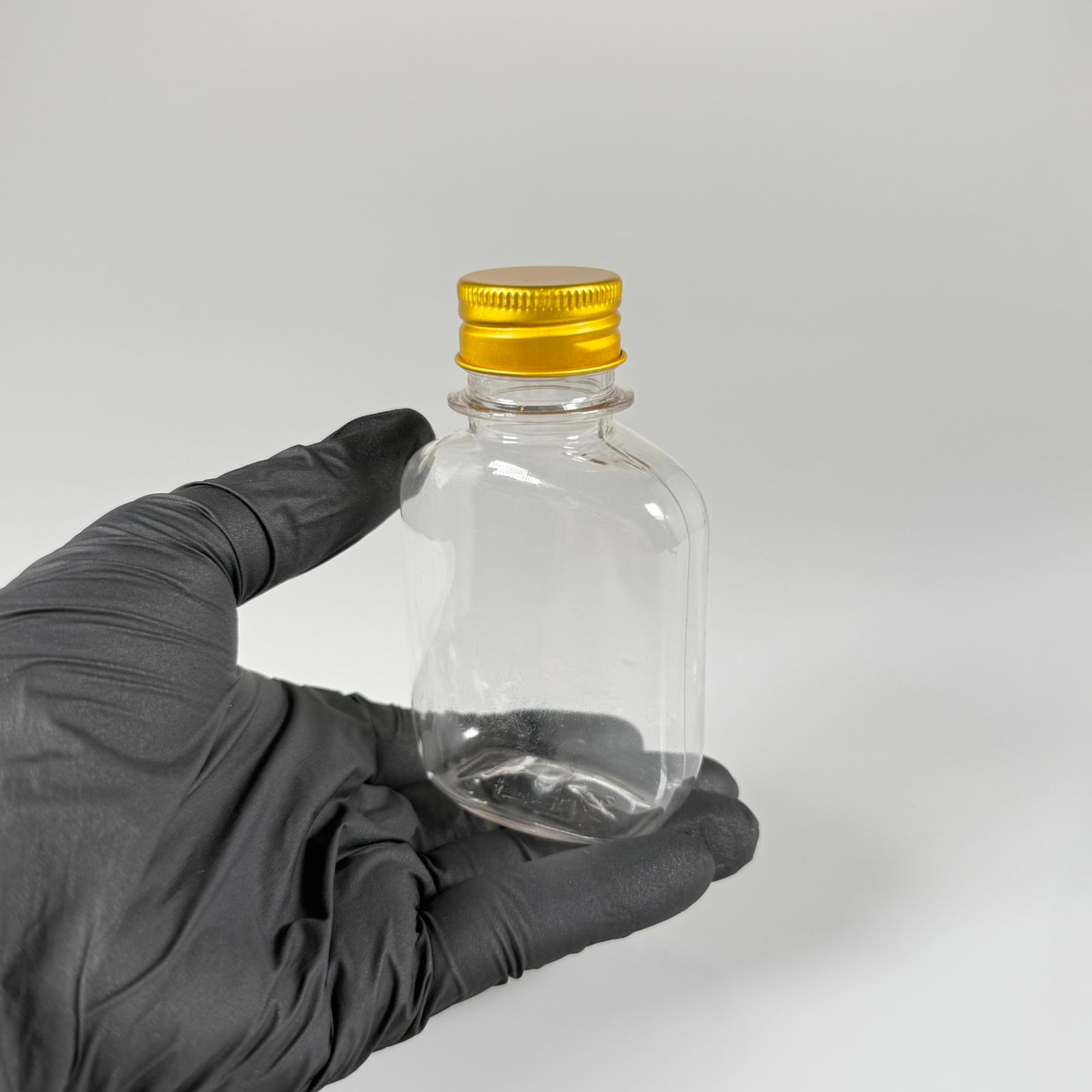 100 ML YASSI METAL KAPAKLI PET ŞİŞE - 100 CC CONTALI GOLD ALÜMİNYUM KAPAKLI PLASTİK ŞİŞE