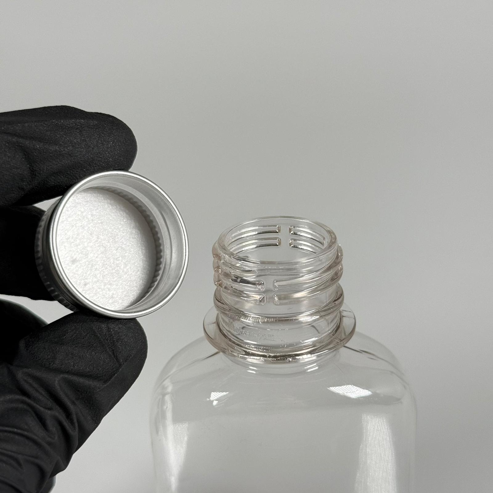 100 ML YASSI METAL KAPAKLI PET ŞİŞE - 100 CC CONTALI GÜMÜŞ ALÜMİNYUM KAPAKLI PLASTİK ŞİŞE