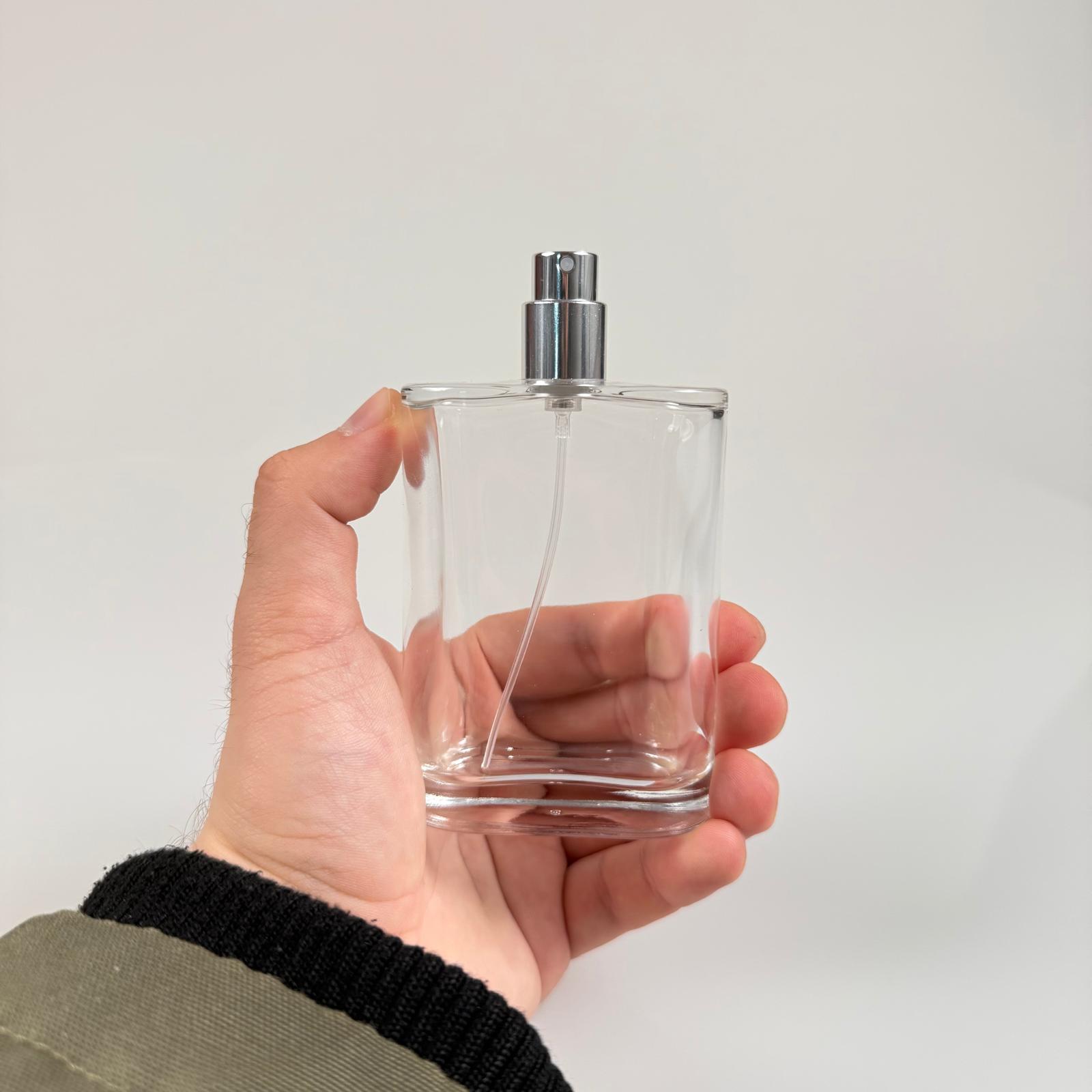 100 ML YASSI MODEL CEO PARFÜM ŞİŞESİ - GÜMÜŞ METAL SPREYLİ (AĞIZ 15 MM GEÇME KOLAY KAPAMA)