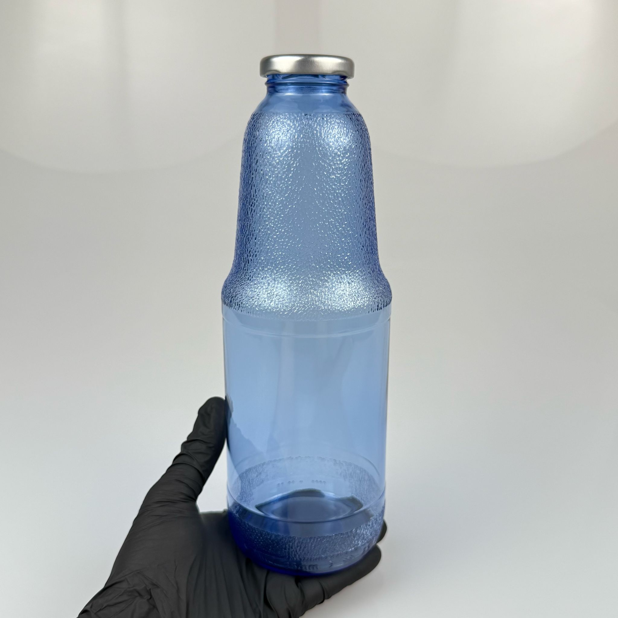 1000 CC MAVİ CAM MEYVE SUYU ŞİŞESİ - GÜMÜŞ METAL KAPAKLI (KONSERVEYE UYGUN) - 1 LİTRE ORJİNAL MAVİ CAM ŞİŞE