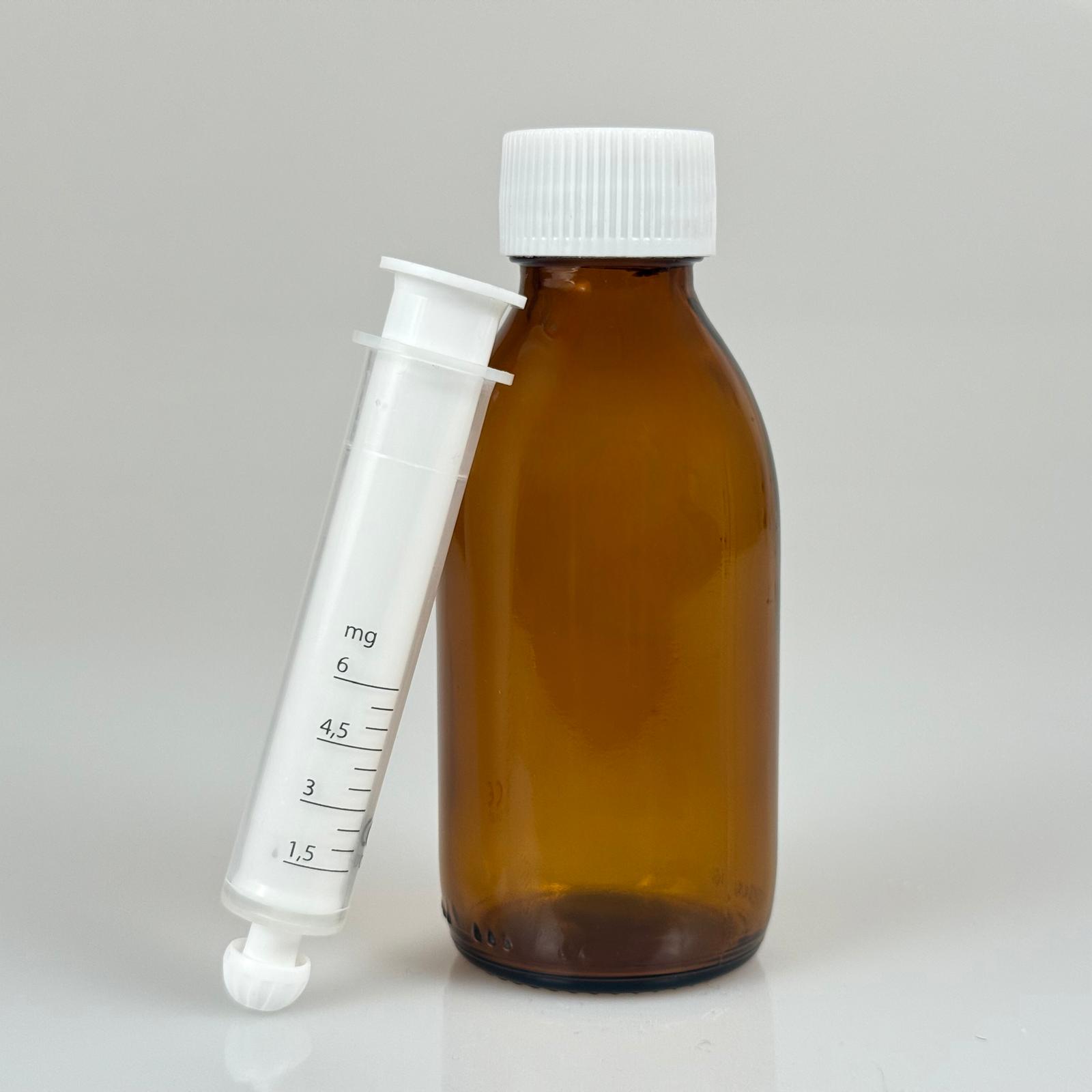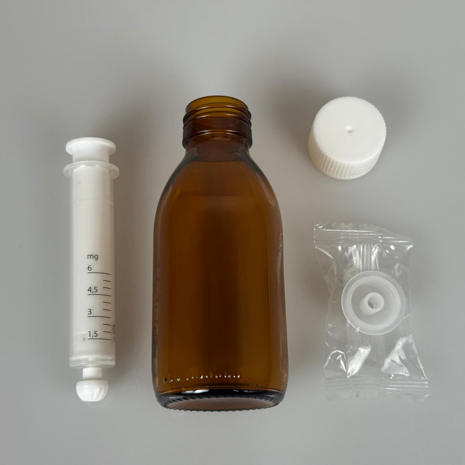 125 ML CAM ECZA ŞİŞESİ + 6 ML DOZAJ PİPETİ + DOZAJ TIPASI + CONTALI PLASTİK KAPAK TAKIM