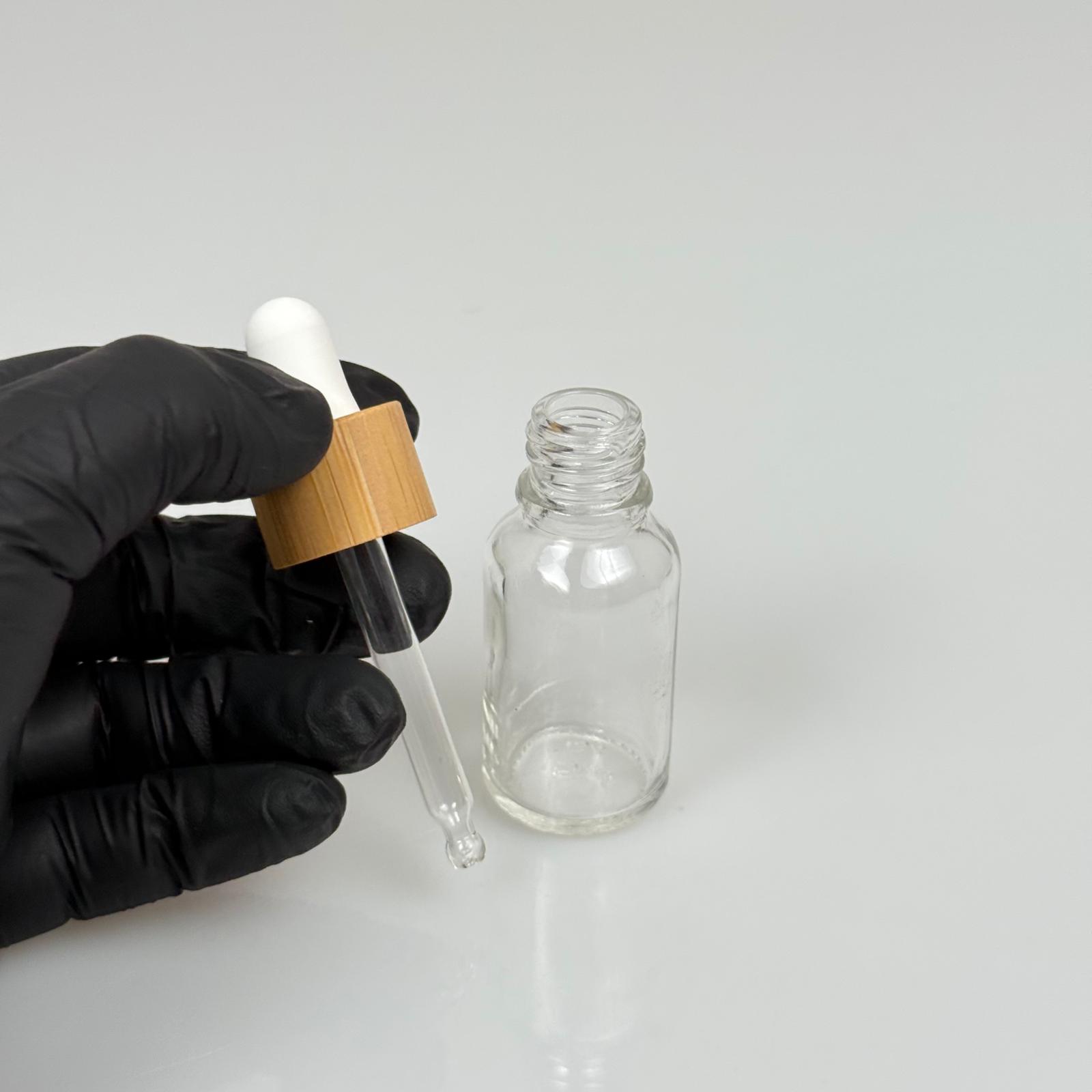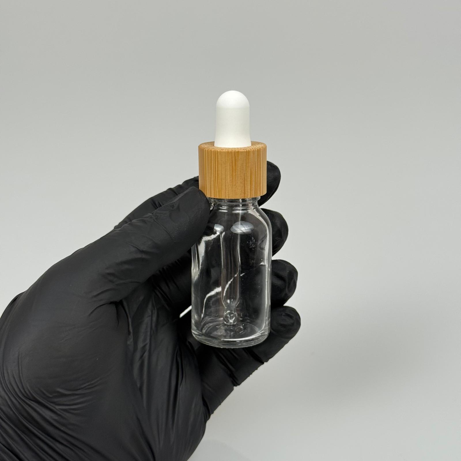 15 CC ŞEFFAF CAM DAMLALIKLI ŞİŞE - BEYAZ EMZİK - BAMBU AHŞAP KAPAK - 15 ML BAMBU KAPAKLI CAM DAMLALIKLI ŞİŞE