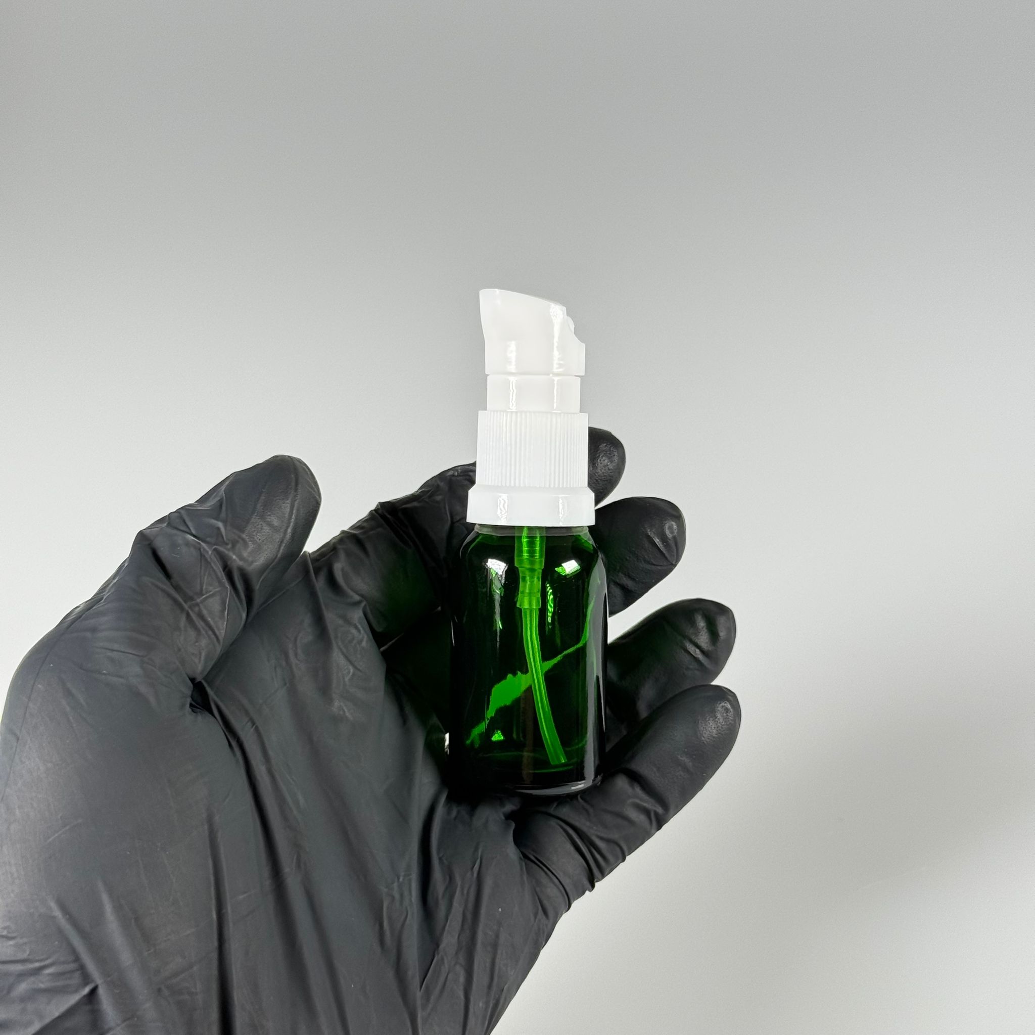 15 CC YEŞİL CAM ŞİŞE - SIZDIRMAZ ETEKLİ BEYAZ LOSYON POMPALI TAKIM - 15 ML LOSYON ŞİŞESİ - YAĞ, KREM GİBİ YOĞUN KIVAMLI SIVILAR İÇİN CAM AMBALAJ