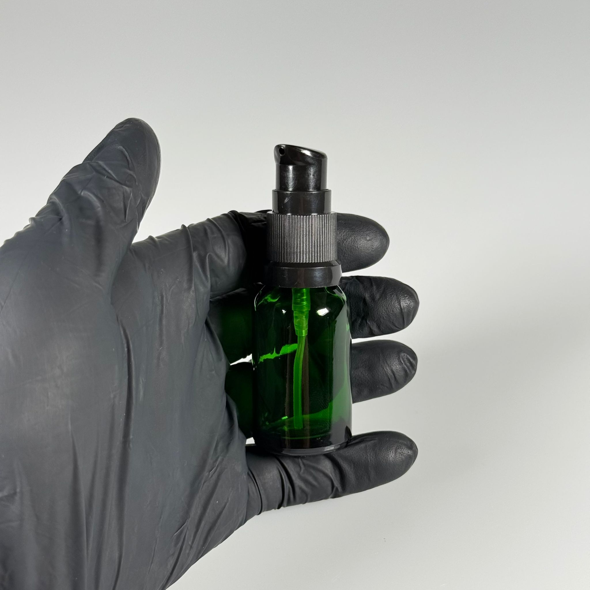 15 CC YEŞİL CAM ŞİŞE - SIZDIRMAZ ETEKLİ SİYAH LOSYON POMPALI TAKIM - 15 ML LOSYON ŞİŞESİ - YAĞ, KREM GİBİ YOĞUN KIVAMLI SIVILAR İÇİN CAM AMBALAJ