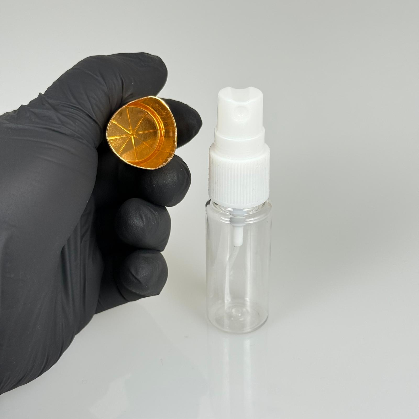 15 ML PET KOLONYA, PARFÜM VB ŞİŞELERİ - METAL ALÜMİNYUM GOLD KAPAK + VİDALI SPREY + 15 CC ŞİŞE SET TAKIM
