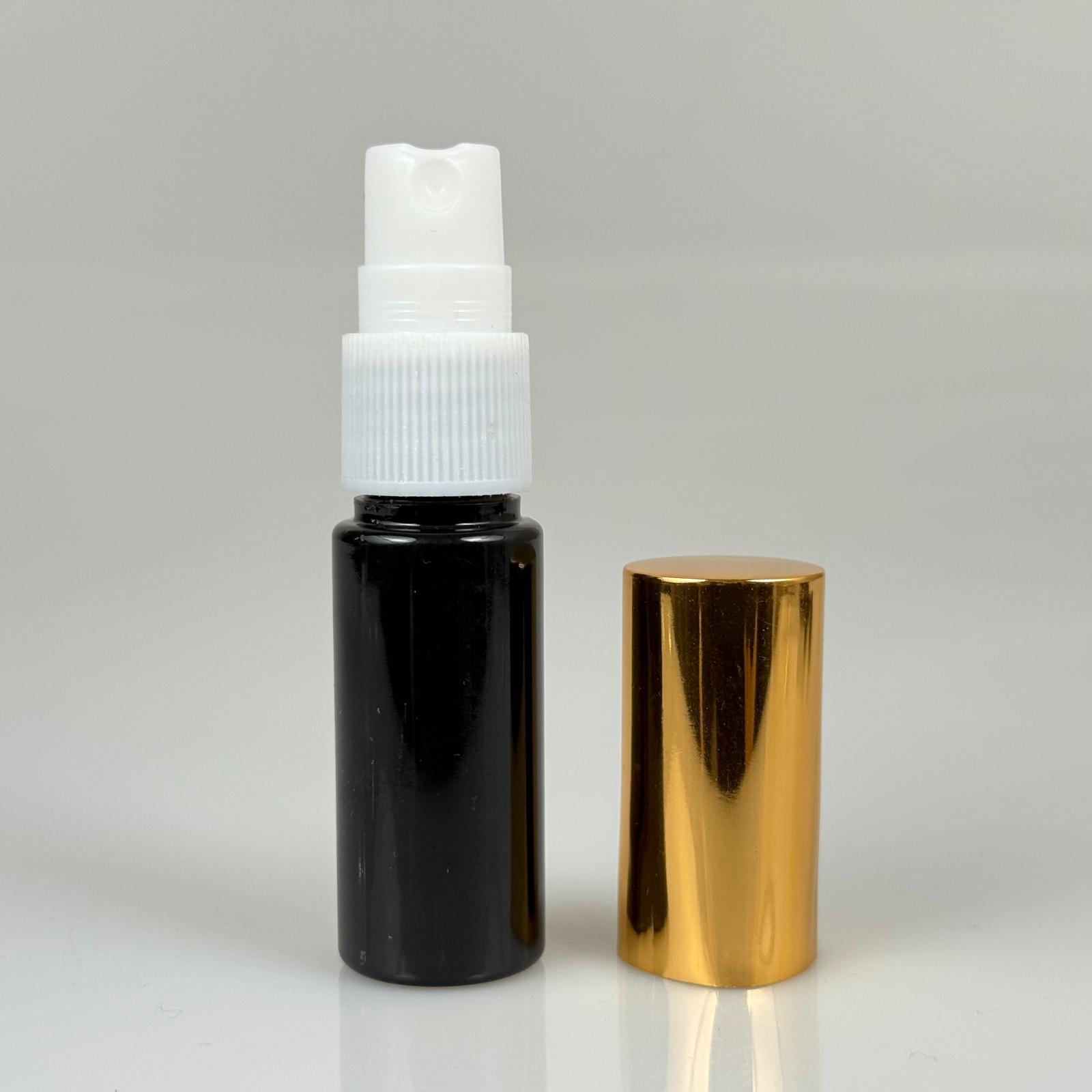 15 ML PET KOLONYA, PARFÜM VB ŞİŞELERİ - METAL ALÜMİNYUM GOLD KAPAK + VİDALI SPREY + 15 CC SİYAH ŞİŞE SET TAKIM