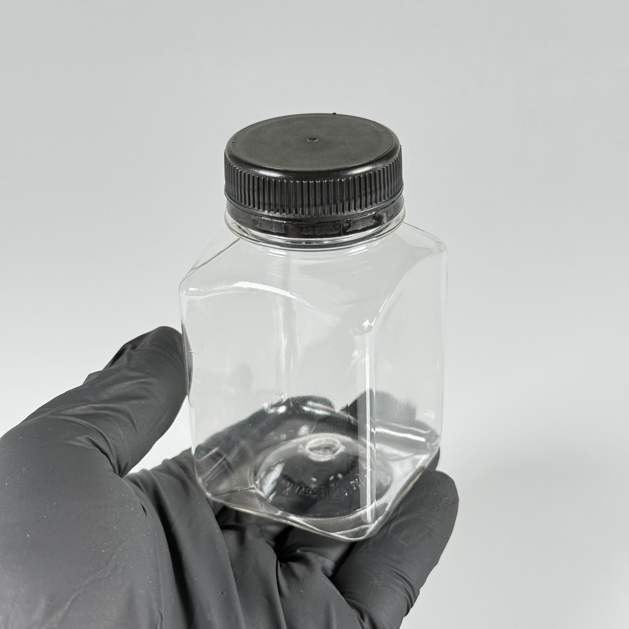 150 CC KÖŞELİ KARE PET ŞİŞE (15,6 GR) - 38 MM GENİŞ AĞIZLI KİLİTLİ SİYAH - 150 ML DETOX, MEYVE SUYU, SMOOTHIE, AYRAN, SÜT, MEŞRUBAT VB İÇİN BOŞ PLASTİK ŞİŞELER