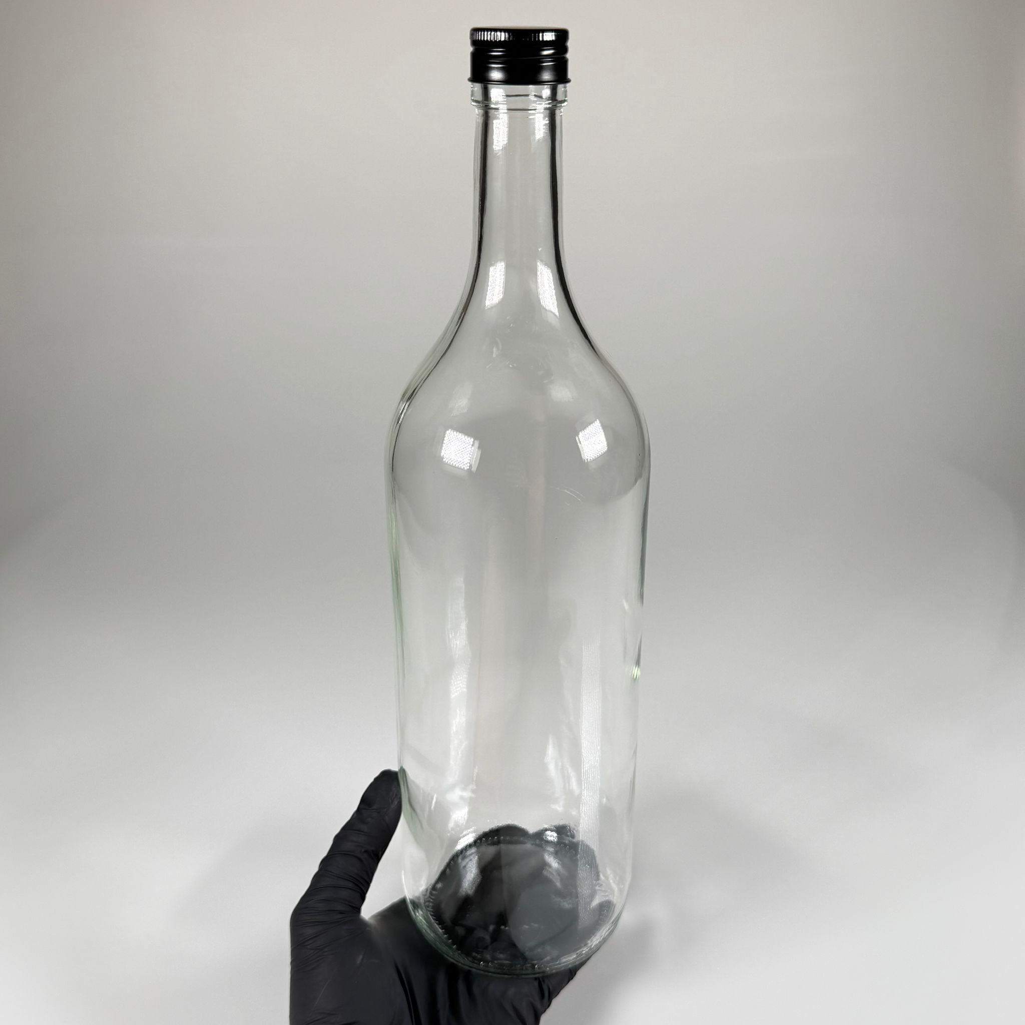 1500 CC ŞEFFAF CAM ŞİŞE - SİYAH METAL ALÜMİNYUM KAPAKLI - 1500 ML YAĞ ŞİŞESİ - SİRKE ŞİŞESİ - 1,5 LİTRE CAM ŞİŞE