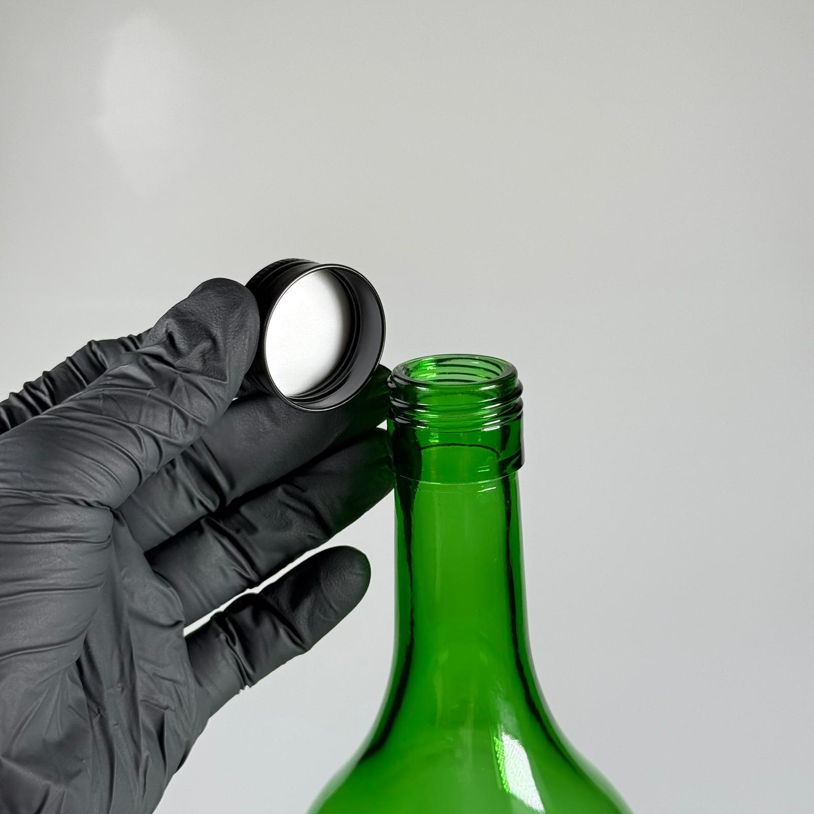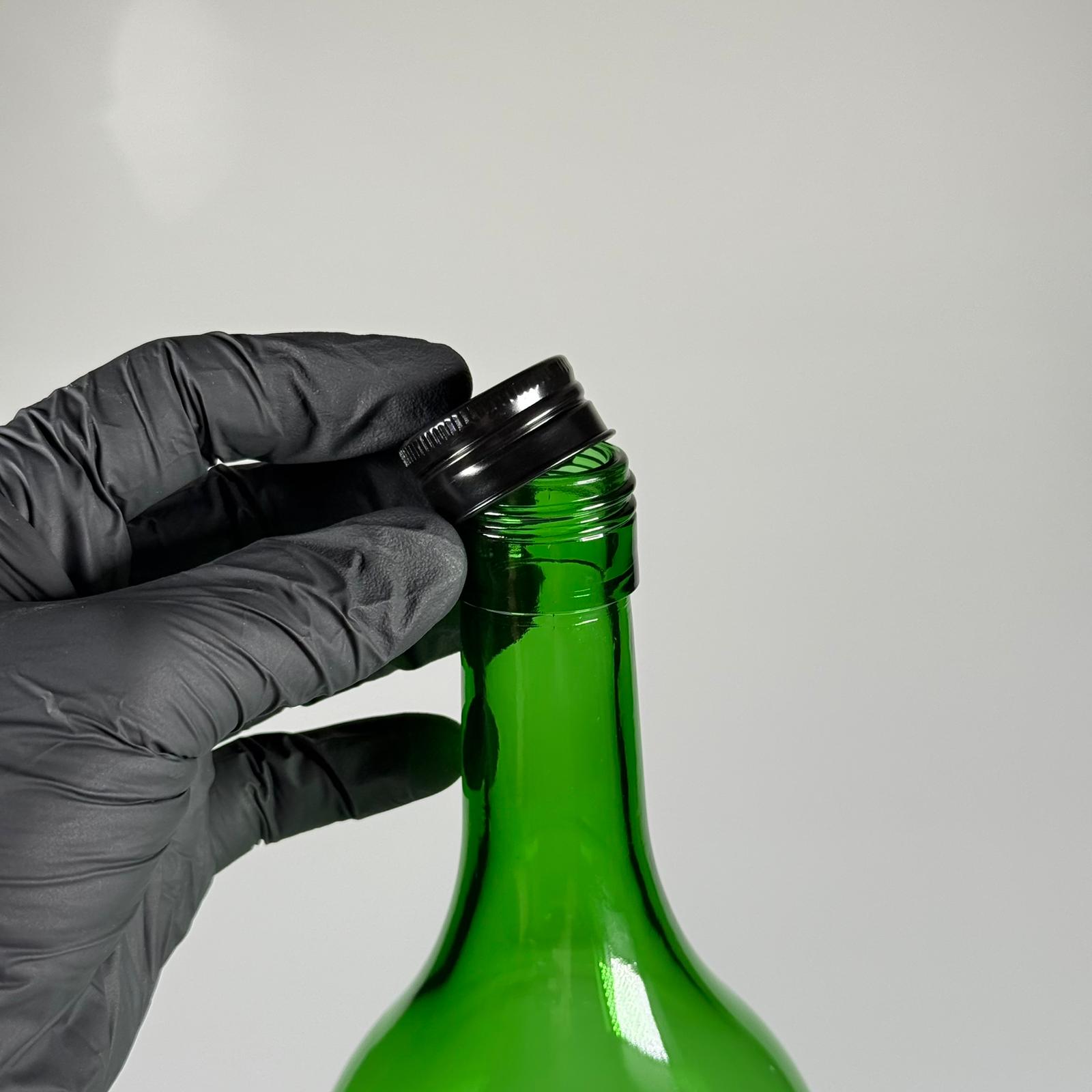 1500 CC YEŞİL CAM ŞİŞE - SİYAH METAL ALÜMİNYUM KAPAKLI - 1500 ML YAĞ ŞİŞESİ - SİRKE ŞİŞESİ - 1,5 LİTRE CAM ŞİŞE