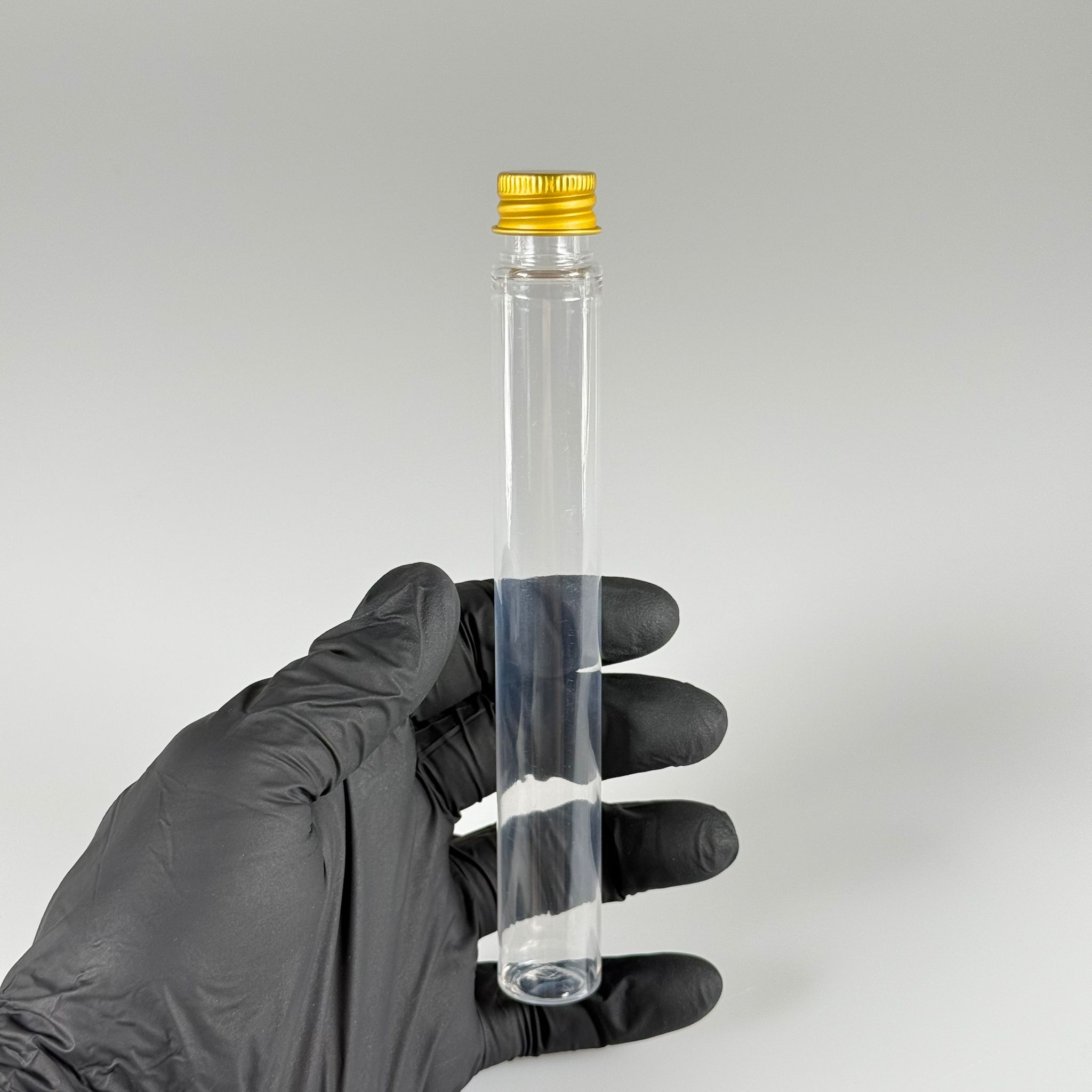 16 CM TÜP - 45 CC UZUN İNCE PET ŞİŞE - CONTALI GOLD METAL KAPAKLI - VANİLYA ÇUBUĞU, BAHARAT, DENEY TÜPÜ VB İÇİN PLASTİK TÜP