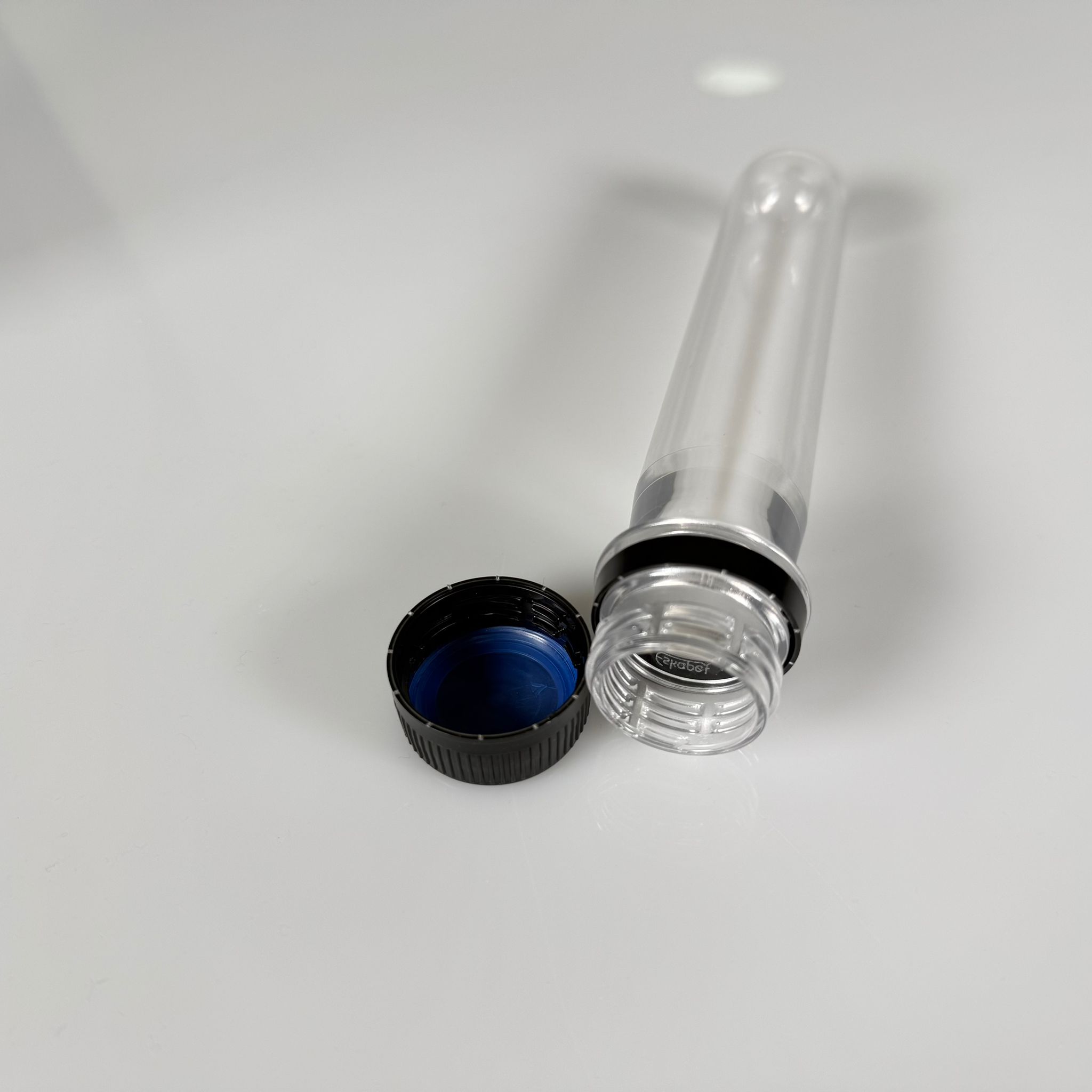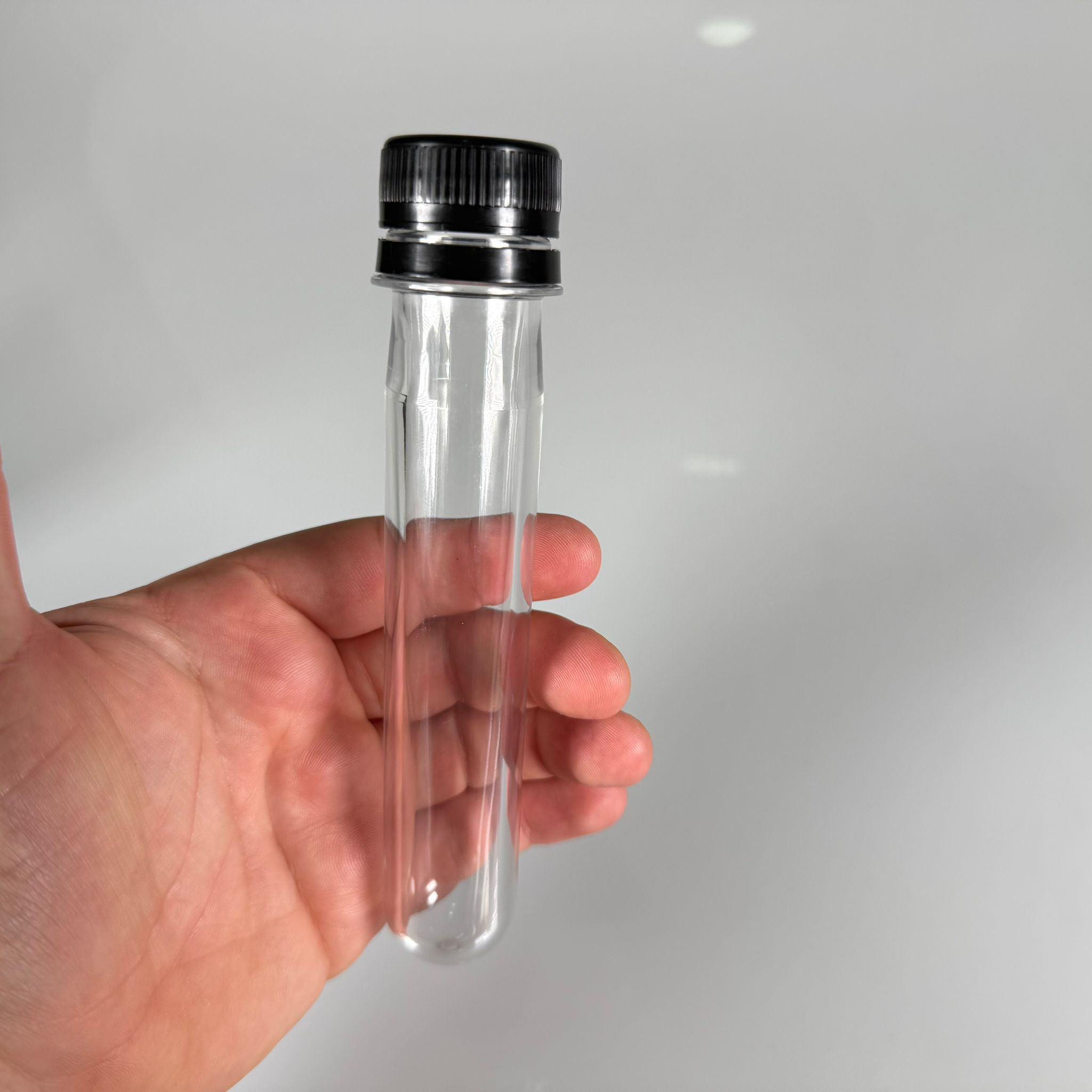 16 CM TÜP - 45 CC UZUN KALIN (51 GR) PET ŞİŞE - CONTALI KİLİTLİ SİYAH KAPAKLI - VANİLYA ÇUBUĞU, BAHARAT, DENEY TÜPÜ, AYAKKABI BAĞCIĞI VB İÇİN PLASTİK TÜP
