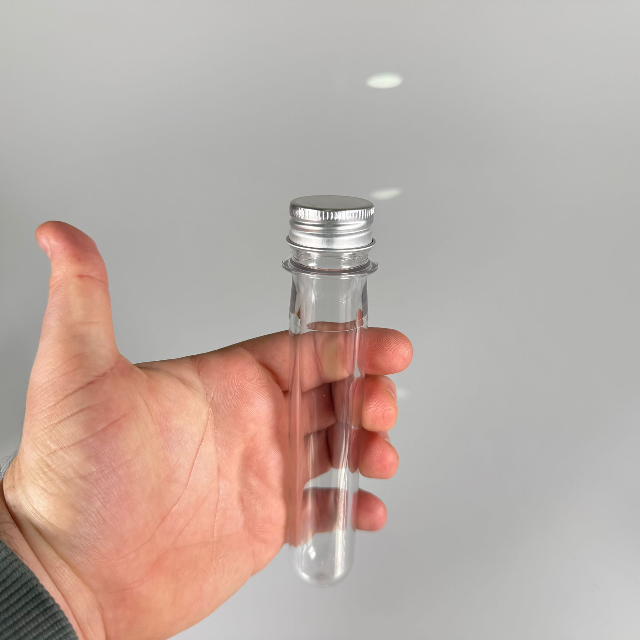 16 CM TÜP - 45 CC UZUN KALIN (51 GR) PET ŞİŞE - CONTALI METAL GÜMÜŞ ALÜMİNYUM KAPAKLI - VANİLYA ÇUBUĞU, BAHARAT, DENEY TÜPÜ, AYAKKABI BAĞCIĞI VB İÇİN PLASTİK TÜP