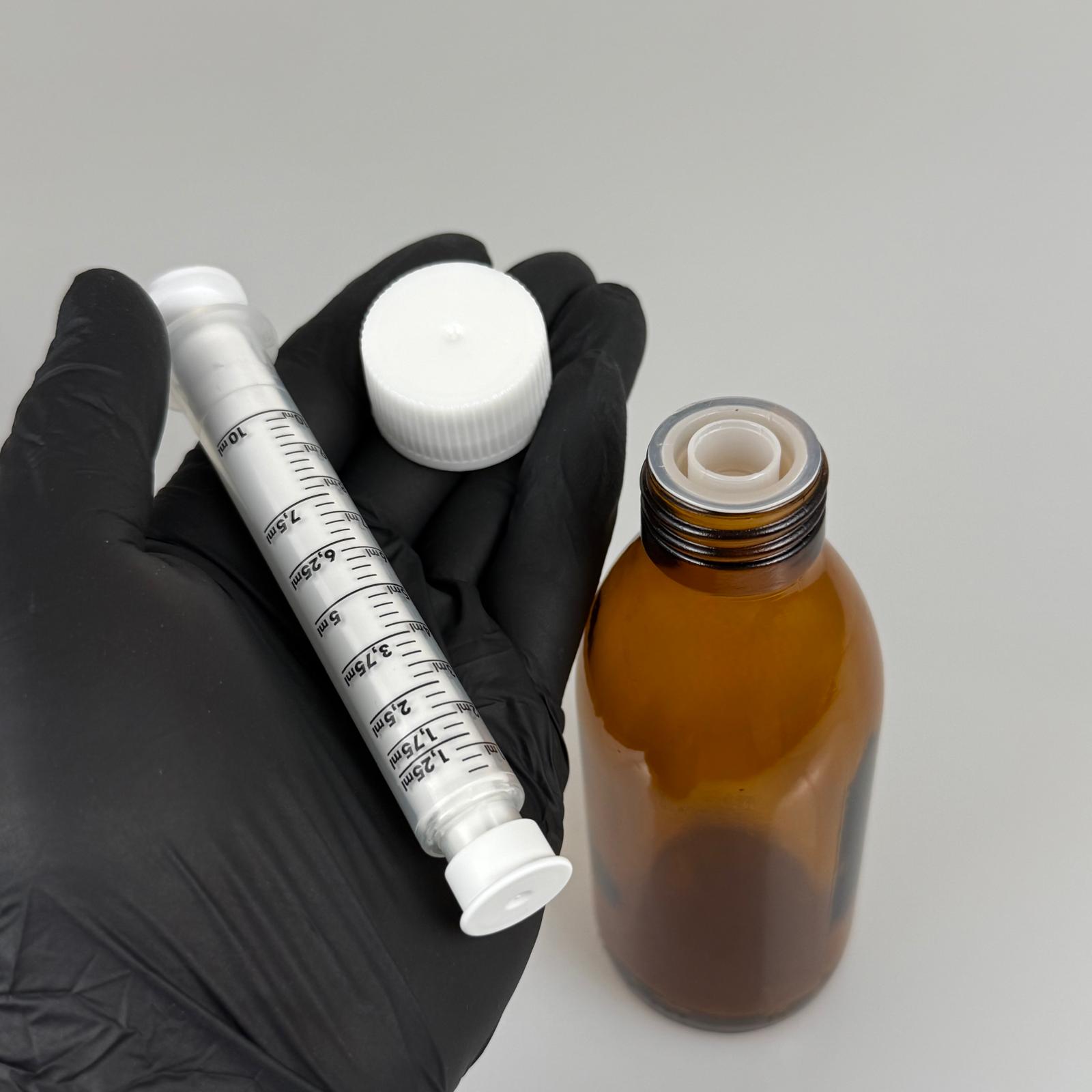 160 ML CAM ECZA ŞİŞESİ + 10 ML DOZAJ PİPETİ + DOZAJ TIPASI + CONTALI PLASTİK KAPAK TAKIM