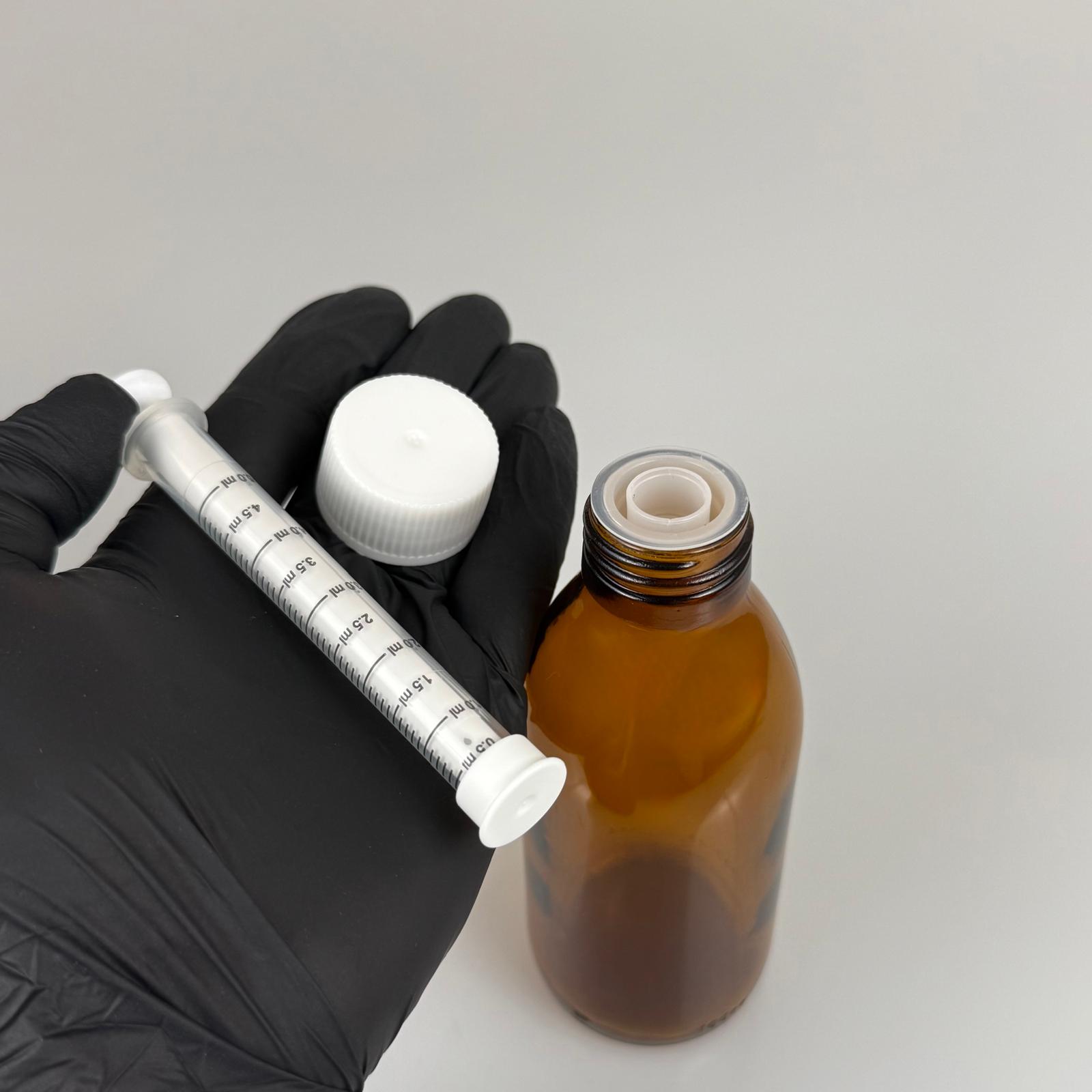 160 ML CAM ECZA ŞİŞESİ + 5 ML DOZAJ PİPETİ + DOZAJ TIPASI + CONTALI PLASTİK KAPAK TAKIM