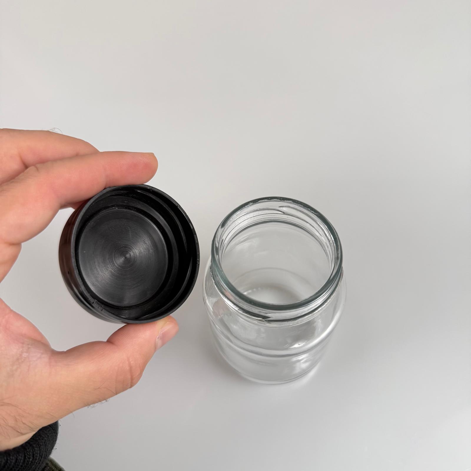 190 CC CAM KAVANOZ + SİYAH PLASTİK KAPAK - 190 ML PLASTİK KAPAKLI CAM KAVANOZ