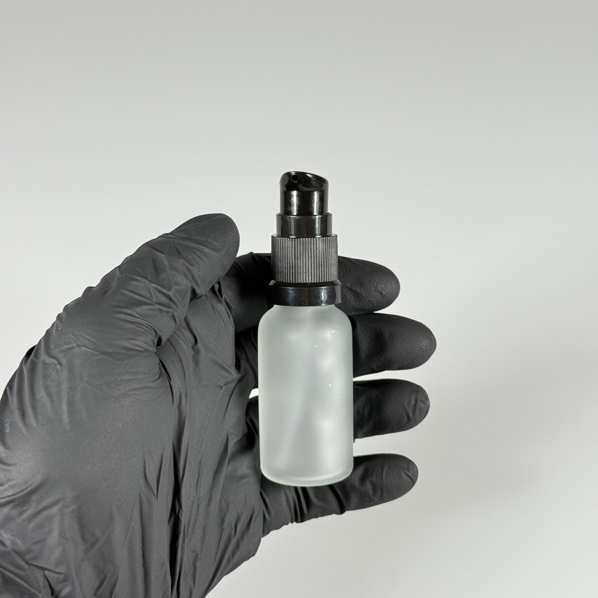 20 CC BUZLU CAM ŞİŞE - SIZDIRMAZ ETEKLİ SİYAH LOSYON POMPALI TAKIM - 20 ML LOSYON ŞİŞESİ - YAĞ, KREM GİBİ YOĞUN KIVAMLI SIVILAR İÇİN CAM AMBALAJ