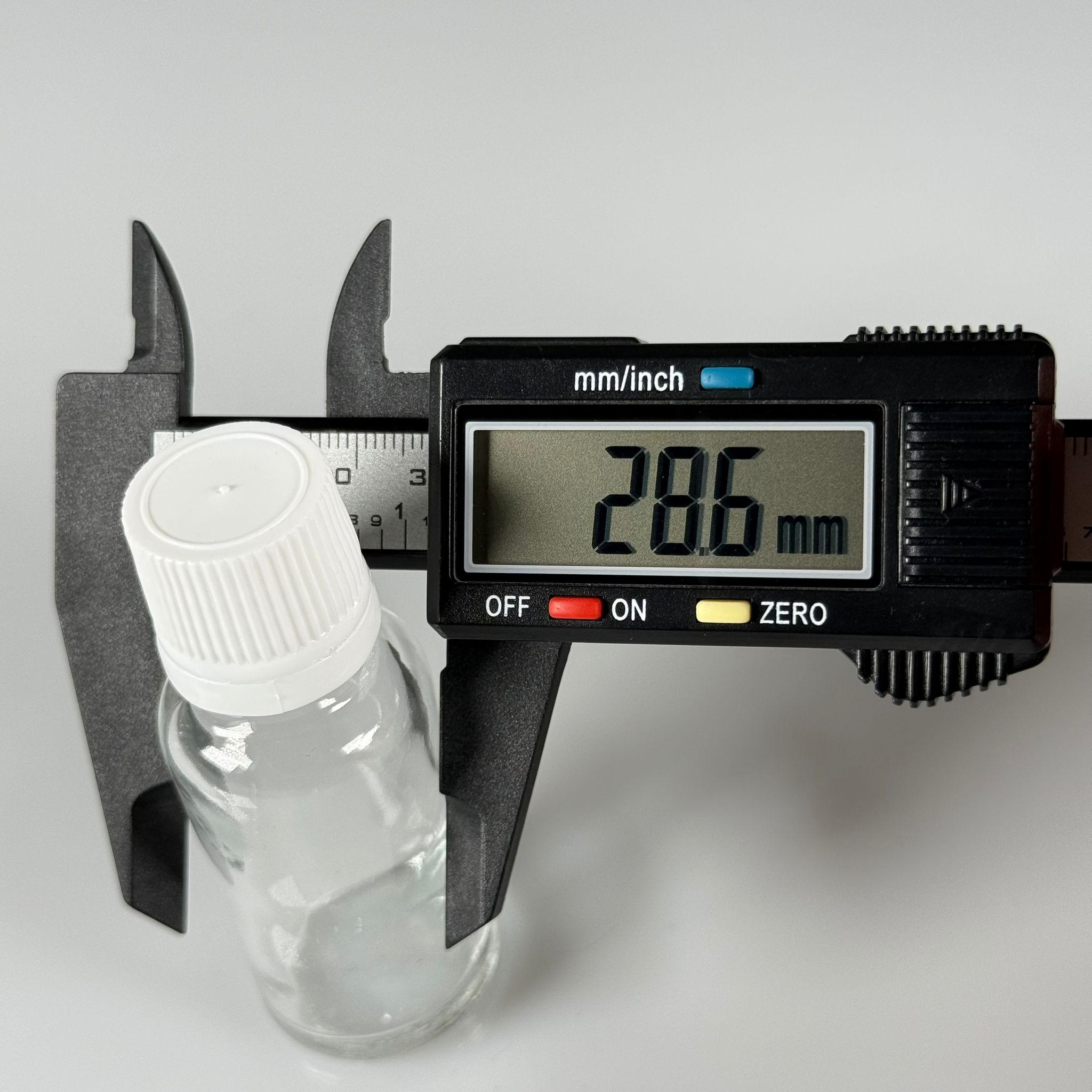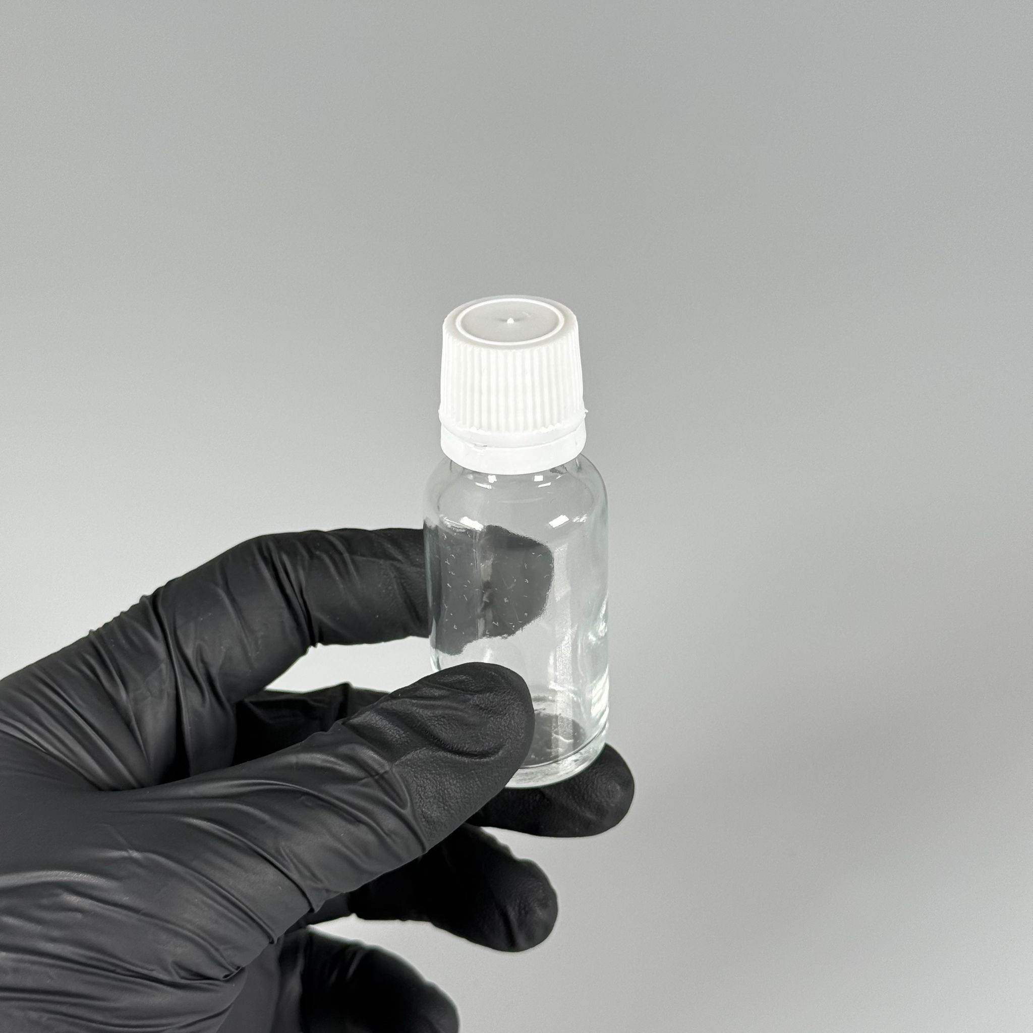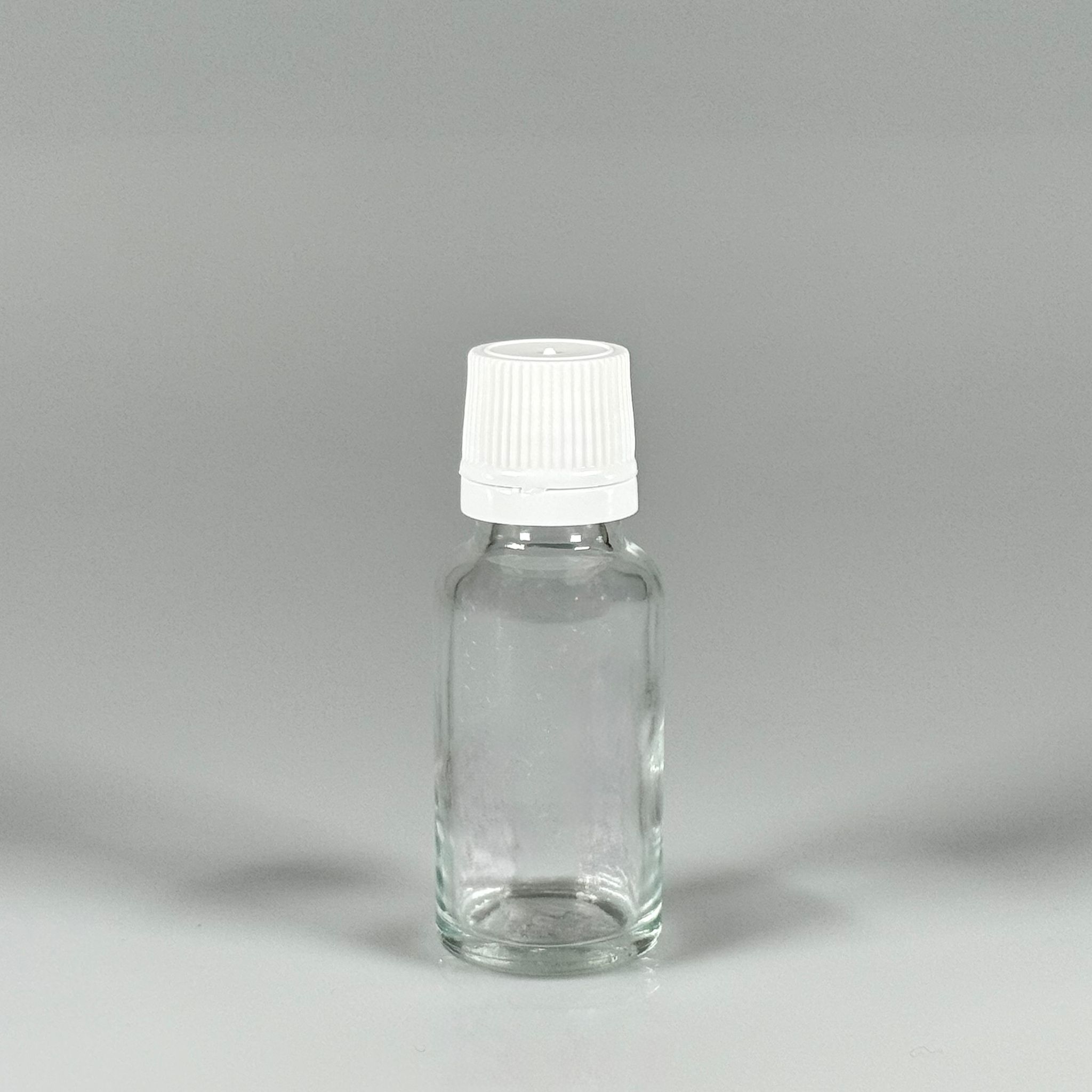 20 CC CAM ŞEFFAF KİLİTLİ, KENDİNDEN CONTALI BEYAZ KAPAKLI - 20 ML DAR AĞIZLI İLAÇ ŞİŞESİ
