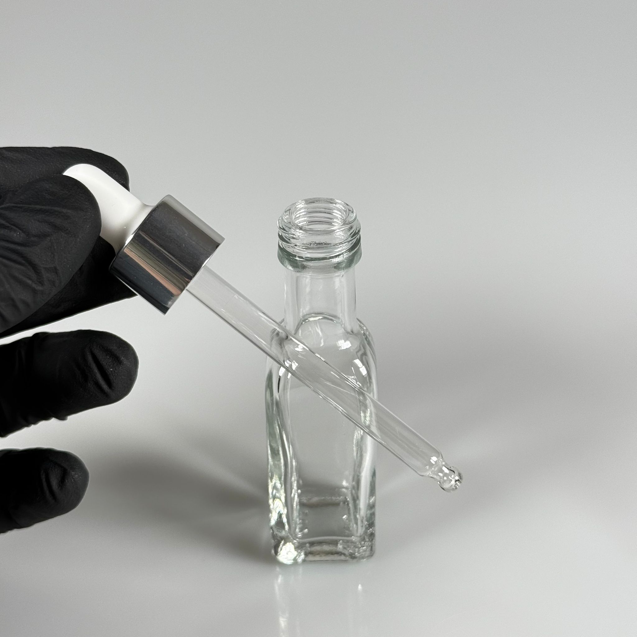 20 CC MARASKA KÖŞELİ CAM DAMLALIKLI CAM ŞİŞE - 20 ml kare cam şişe beyaza gümüş damlalıklı