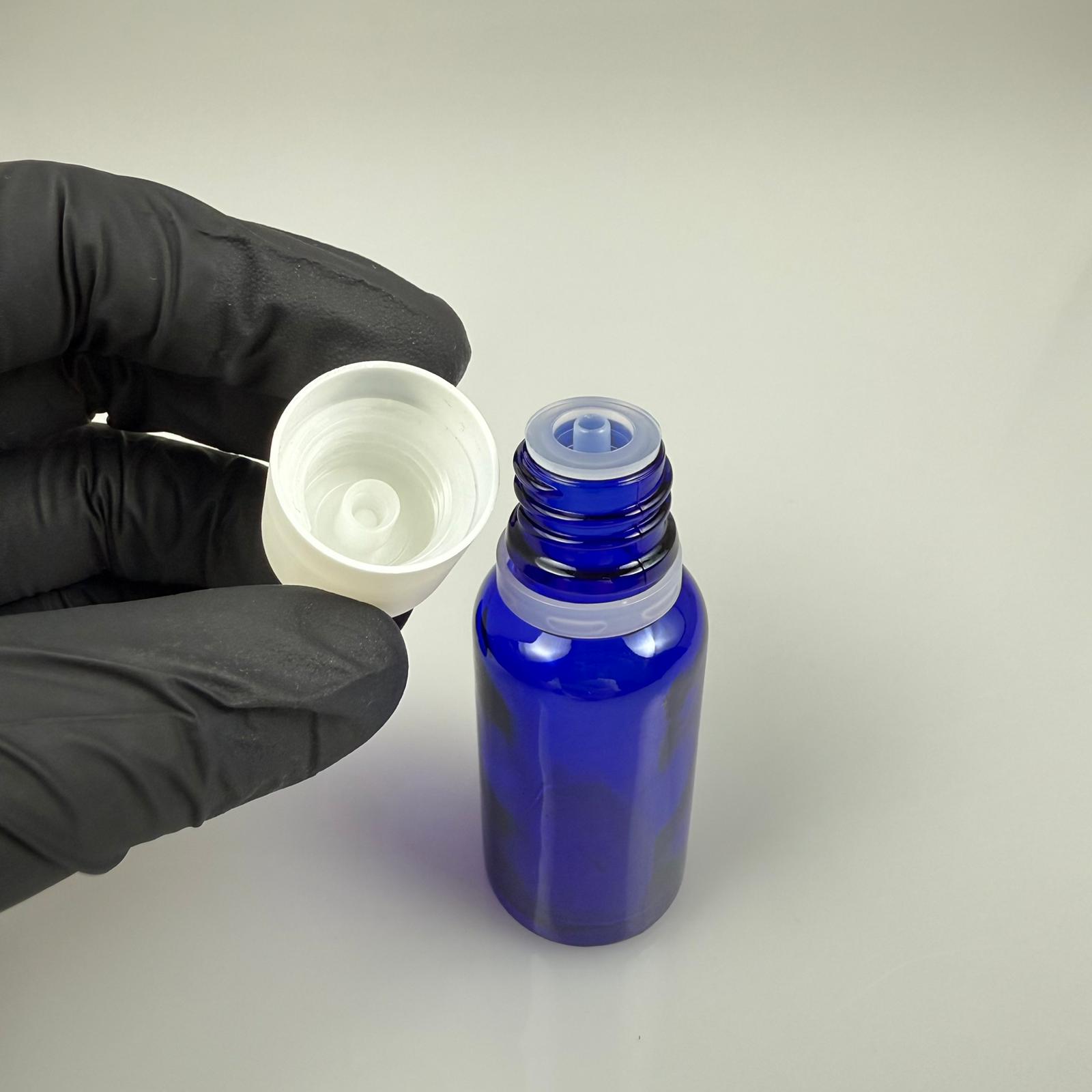 20 CC MAVİ CAM ŞİŞE + İÇTEN DAMLALIKLI ÇOCUK KİLİTLİ BEYAZ KAPAK - MAVİ 20 ML KİLİT KAPAKLI DAMLATMALI ŞİŞE