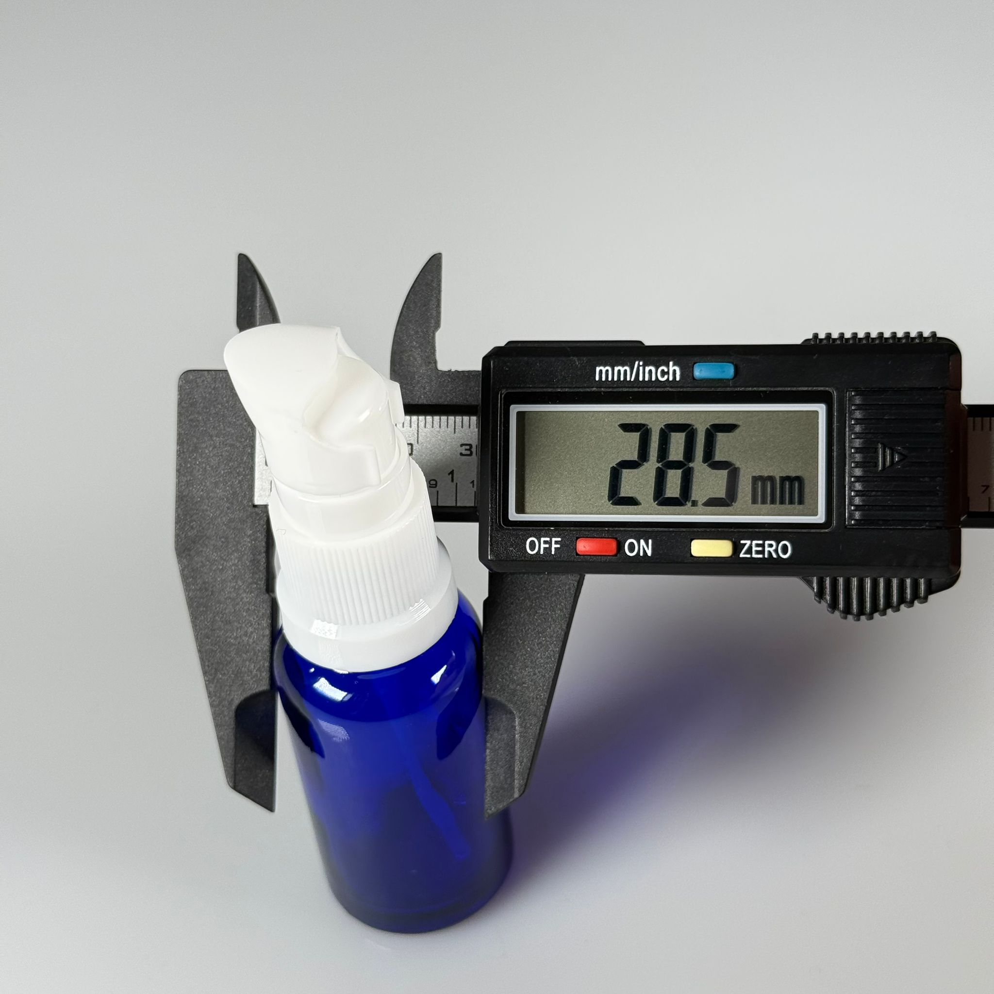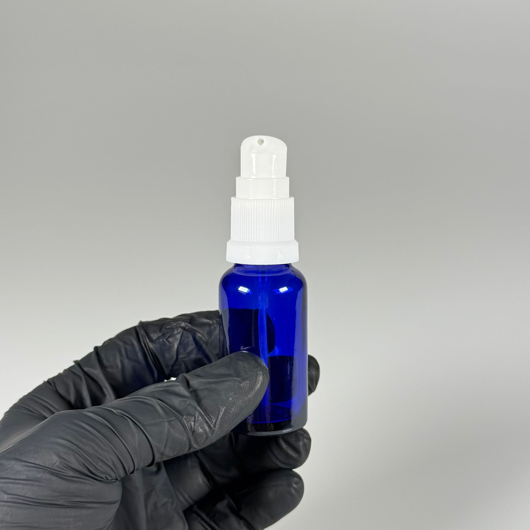 20 CC MAVİ CAM ŞİŞE - SIZDIRMAZ ETEKLİ BEYAZ LOSYON POMPALI TAKIM - 20 ML LOSYON ŞİŞESİ - YAĞ, KREM GİBİ YOĞUN KIVAMLI SIVILAR İÇİN CAM AMBALAJ