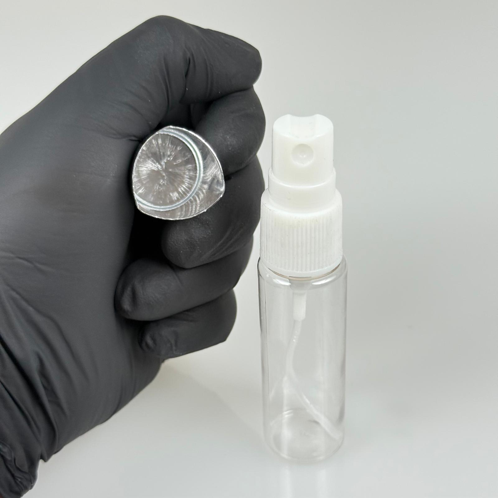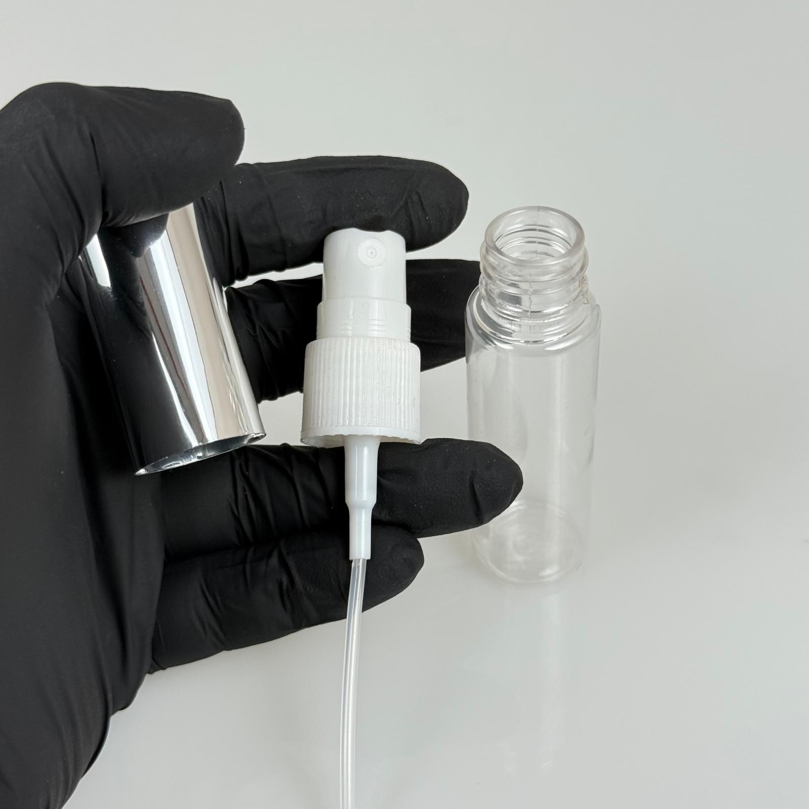 20 ML PET KOLONYA, PARFÜM VB ŞİŞELERİ - METAL ALÜMİNYUM GÜMÜŞ KAPAK + VİDALI SPREY + 20 CC SHOT ŞİŞE SET TAKIM