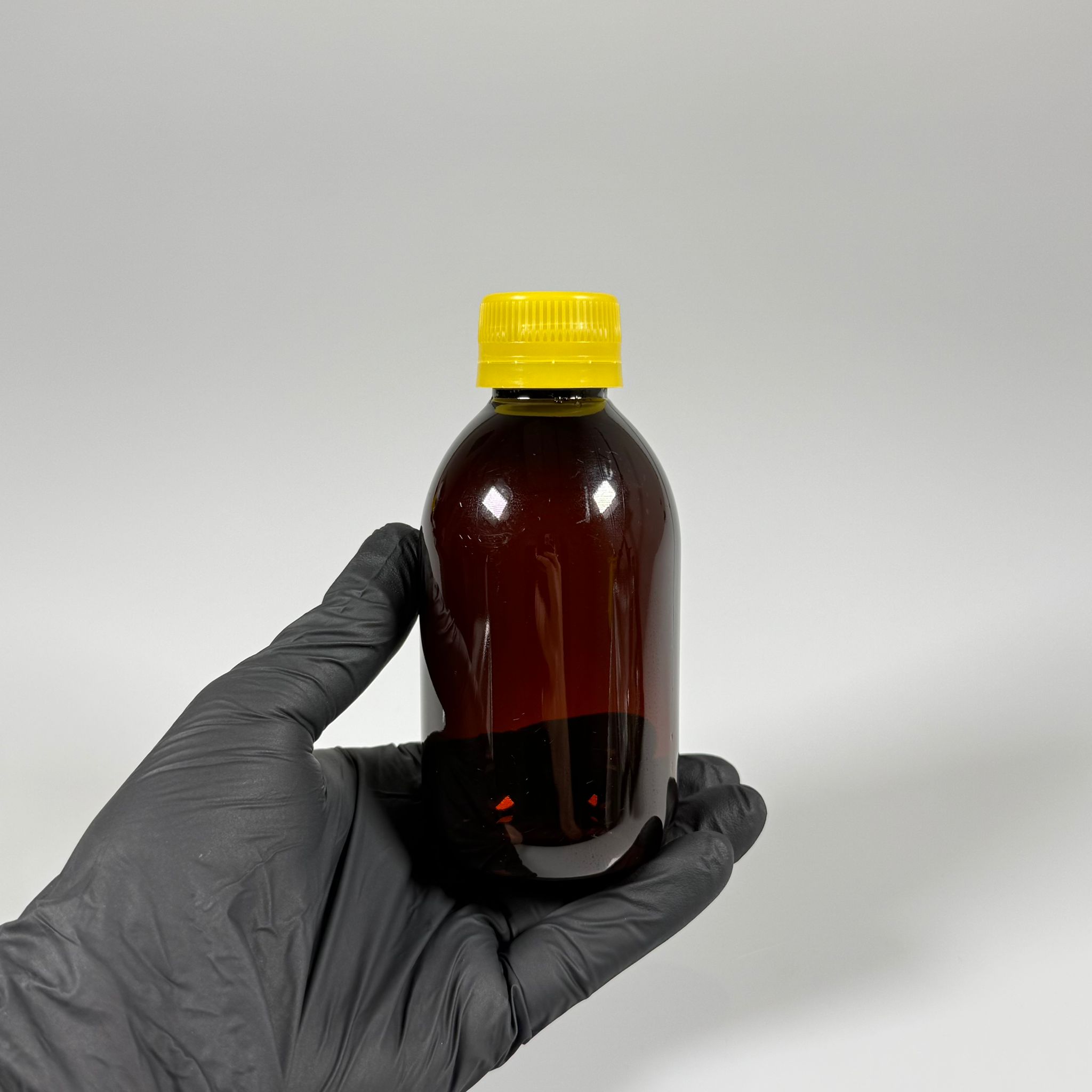 200 CC AMBER PET ECZA ŞİŞESİ - SARI KİLİTLİ CONTALI KAPAKLI - 200 ML KAHVERENGİ PLASTİK ŞURUP ŞİŞESİ (21 GR)