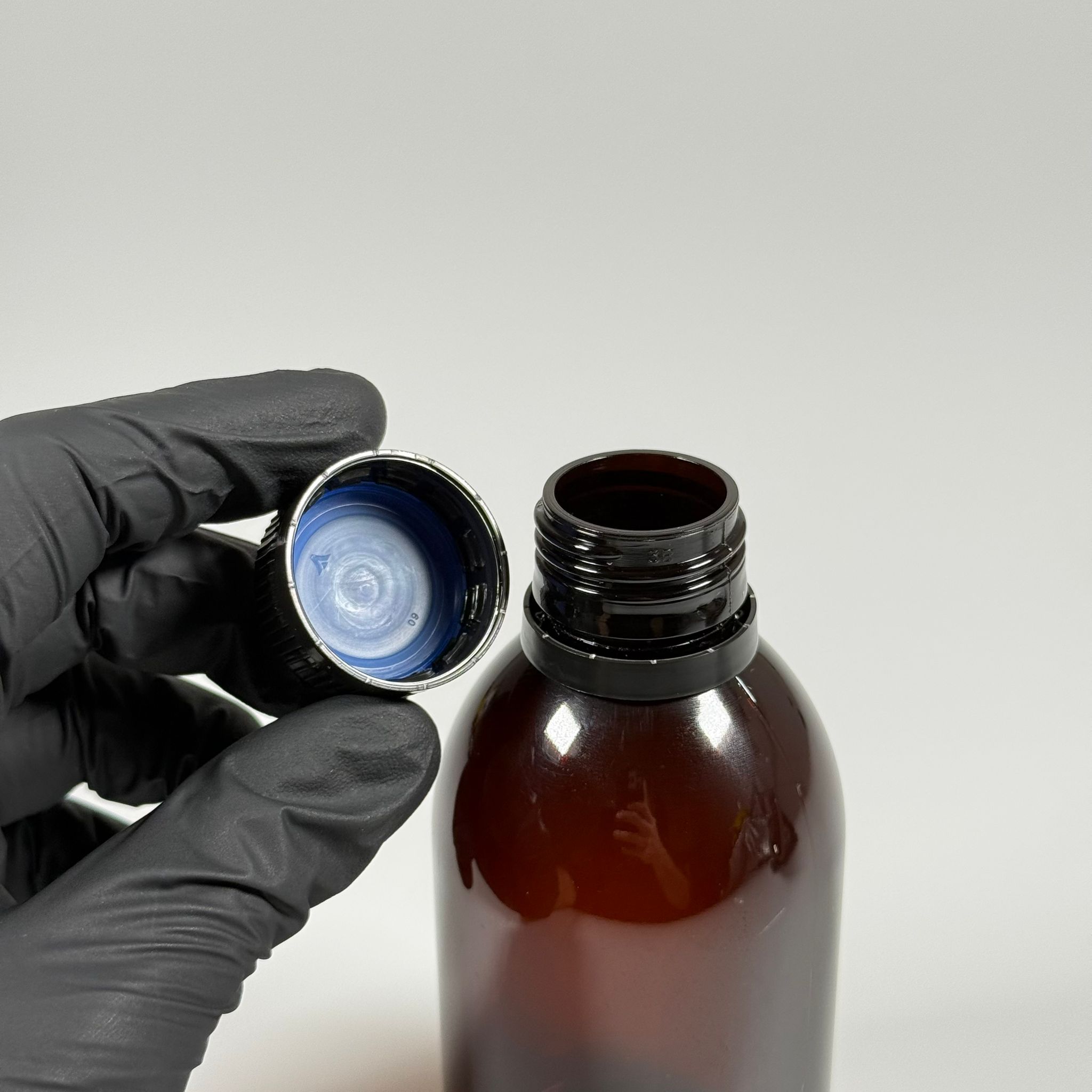 200 CC AMBER PET ECZA ŞİŞESİ - SİYAH KİLİTLİ CONTALI KAPAKLI - 200 ML KAHVERENGİ PLASTİK ŞURUP ŞİŞESİ (21 GR)