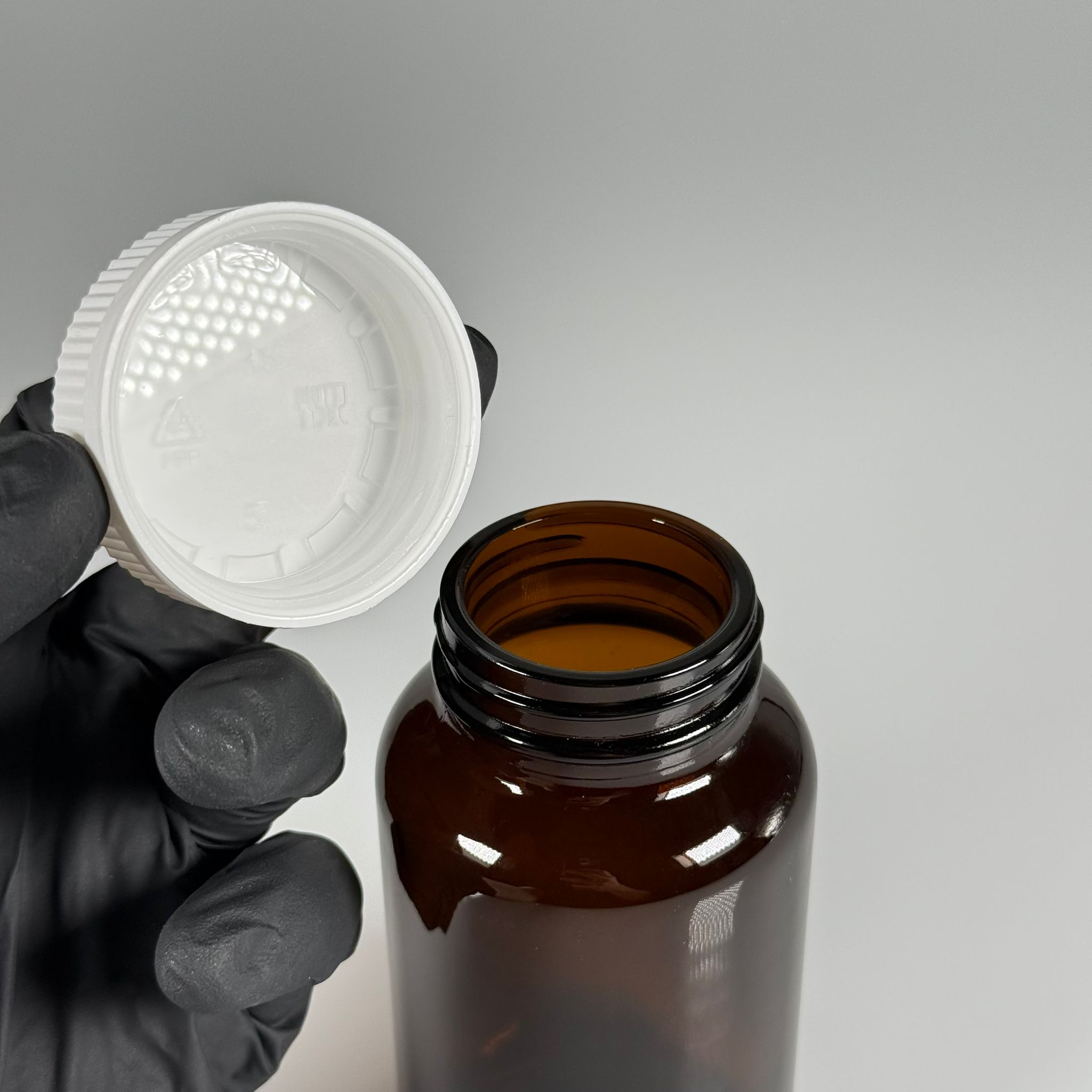 200 CC CAM KAHVERENGİ AMBER TABLET KAPSÜL ŞİŞESİ + 45 MM VİDALI ÇOCUK EMNİYET KİLİTLİ BEYAZ PLASTİK KAPAK