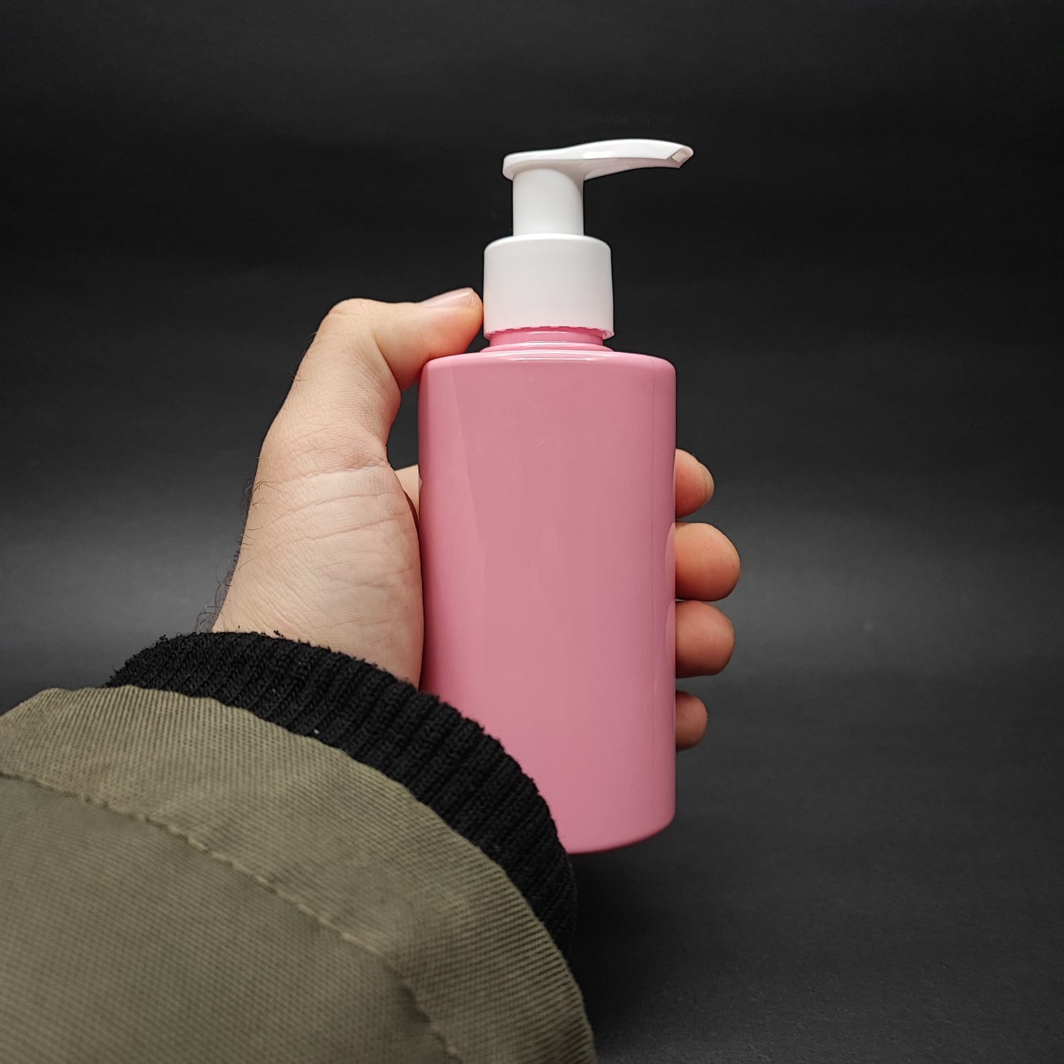 200 CC KÜT BOYUNLU SİLİNDİR PET ŞİŞE (24 GR) - BEYAZ SIVI SABUN POMPALI - 200 ML PLASTİK ŞİŞE - PEMBE