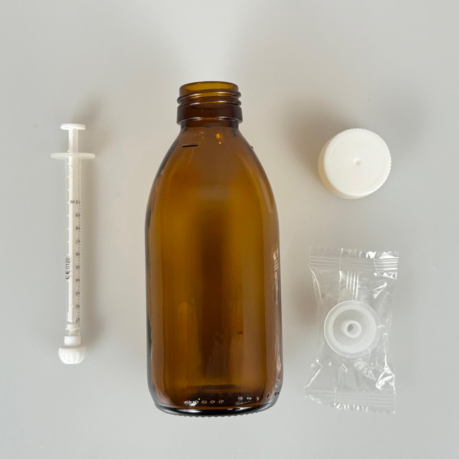 200 ML CAM ECZA ŞİŞESİ + 1 ML DOZAJ PİPETİ + DOZAJ TIPASI + CONTALI PLASTİK KAPAK TAKIM