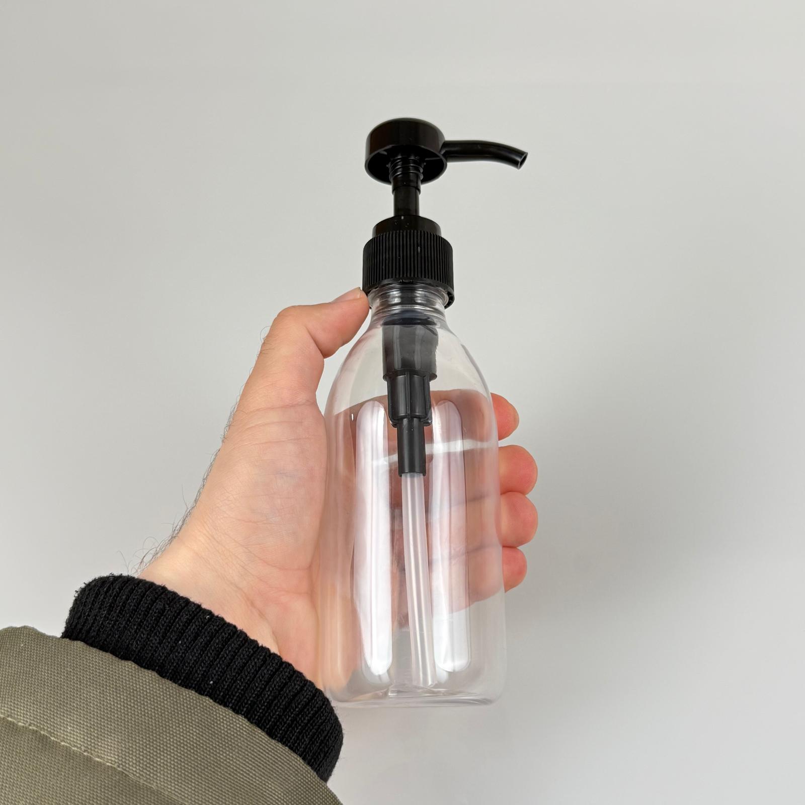 250 CC PET ŞEFFAF FRANSIZ MODEL ŞİŞE - SİYAH DOZAJ POMPALI (HER BASMADA 4 CC SIVI ATAR) - 0,25 LT POMPALI ŞİŞE - ŞURUP, ŞAMPUAN, KREM GİBİ YOĞUN KIVAMLI SIVILARDA KULLANILIR