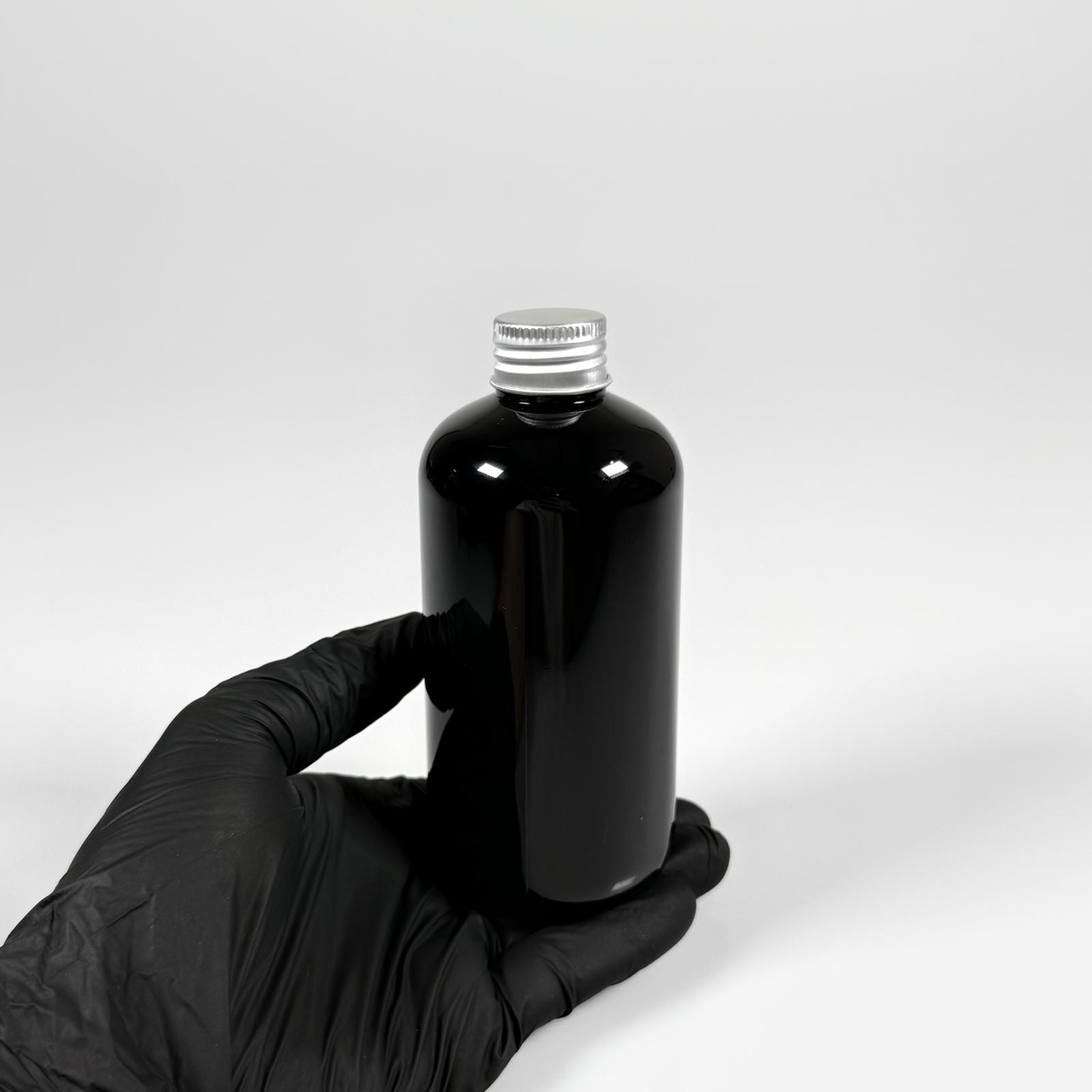 250 CC SİYAH PLASTİK ŞİŞE ZEYNEP MODEL - CONTALI GÜMÜŞ METAL KAPAKLI - 250 ML TOMBUL PET ŞİŞE