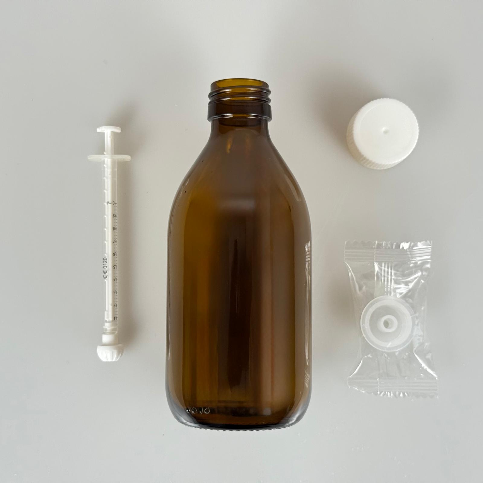 250 ML CAM ECZA ŞİŞESİ + 1 ML DOZAJ PİPETİ + DOZAJ TIPASI + CONTALI PLASTİK KAPAK TAKIM