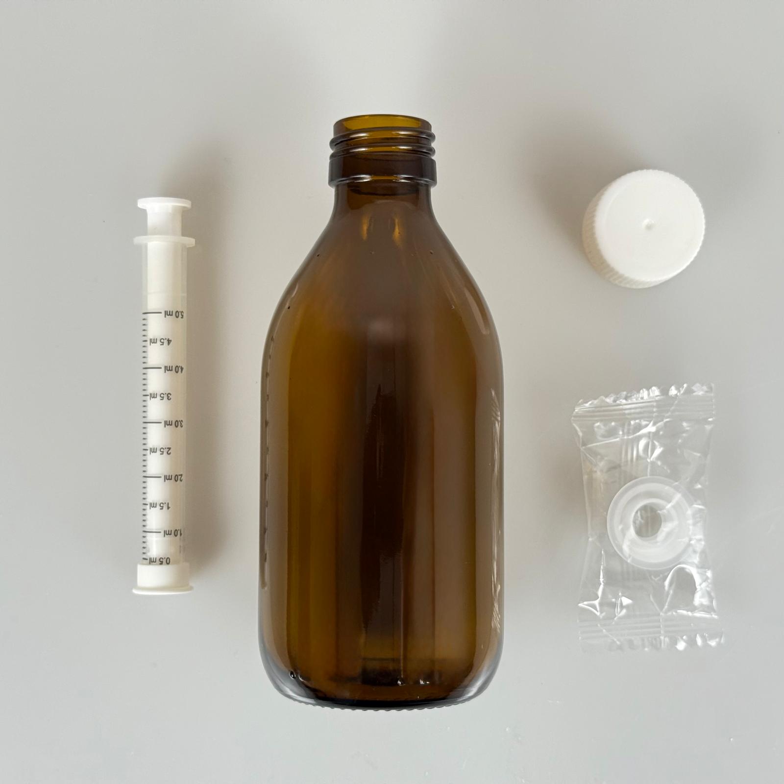 250 ML CAM ECZA ŞİŞESİ + 5 ML DOZAJ PİPETİ + DOZAJ TIPASI + CONTALI PLASTİK KAPAK TAKIM