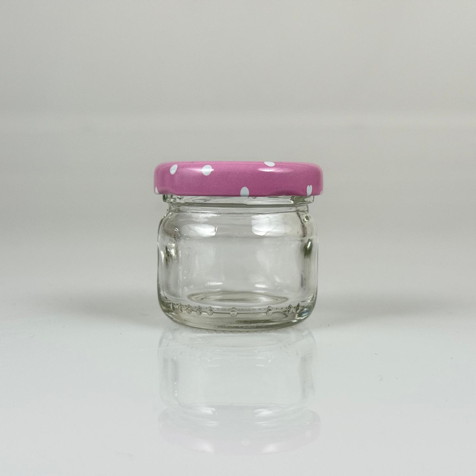 29 CC CAM KAVANOZ - PEMBE METAL KAPAKLI - 29 ML CAM KAVANOZ