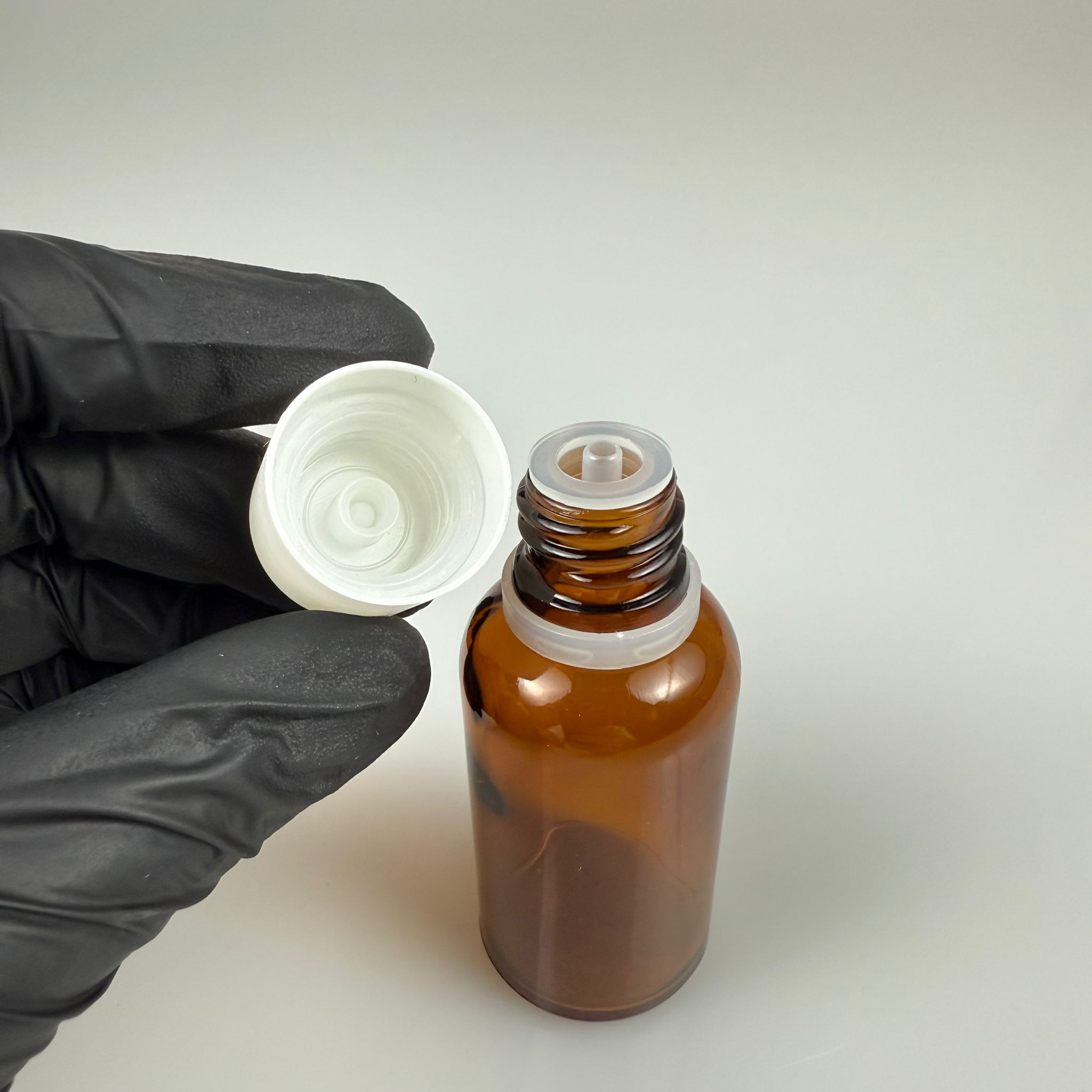 30 CC AMBER CAM ŞİŞE + İÇTEN DAMLALIKLI ÇOCUK KİLİTLİ BEYAZ KAPAK - KAHVERENGİ 30 ML KİLİT KAPAKLI DAMLATMALI ŞİŞE