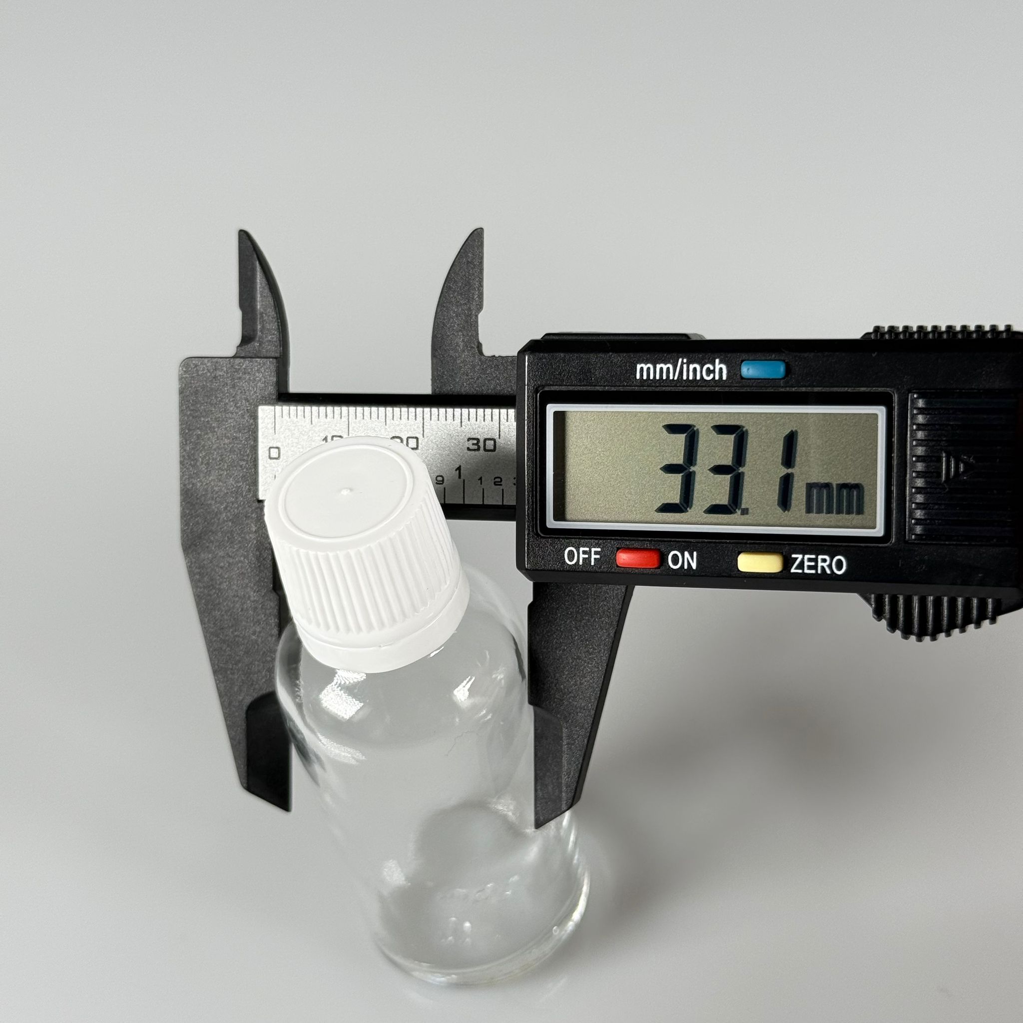 30 CC CAM ŞEFFAF KİLİTLİ, KENDİNDEN CONTALI BEYAZ KAPAKLI - 30 ML DAR AĞIZLI İLAÇ ŞİŞESİ